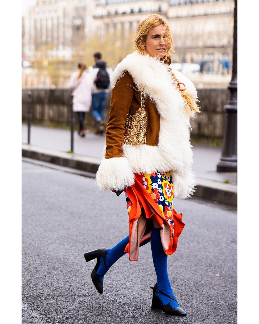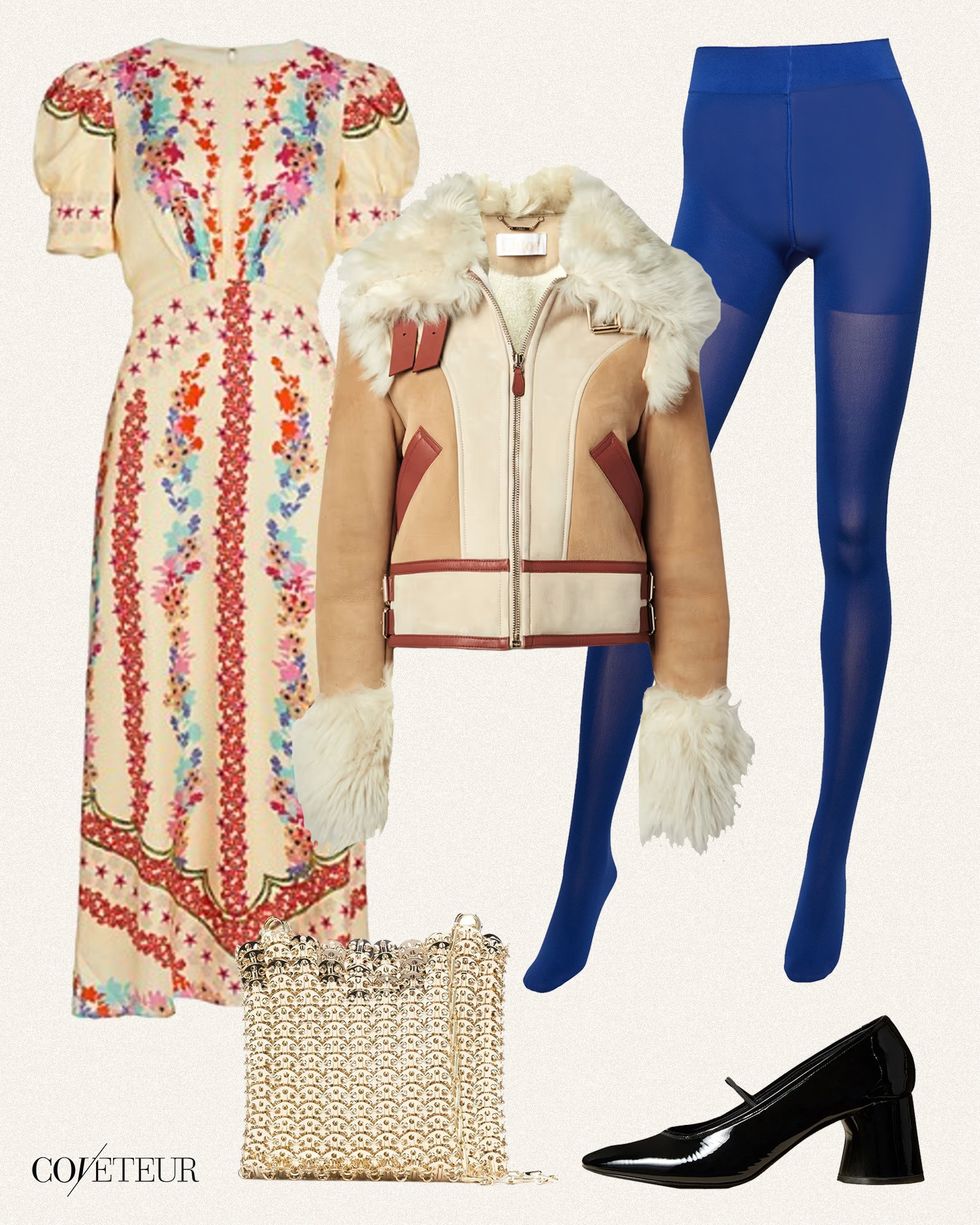 I am a big proponent of bringing your sundresses out to play in their off-season. If you are feeling bold, match your tights to your brightest mid-length frock and pair with a block-heel pump. Complete the look with a sherpa jacket for a full Penny Lane moment.