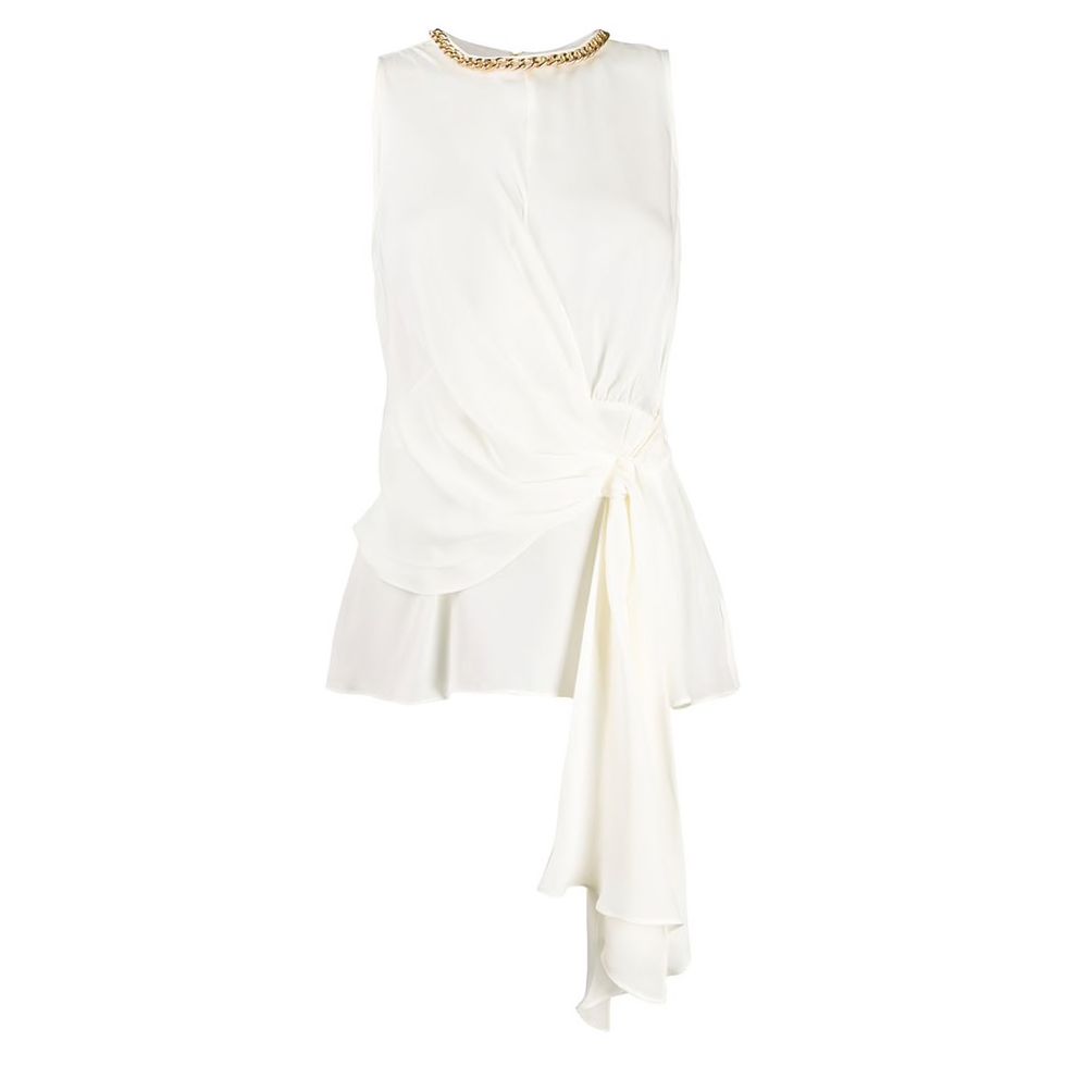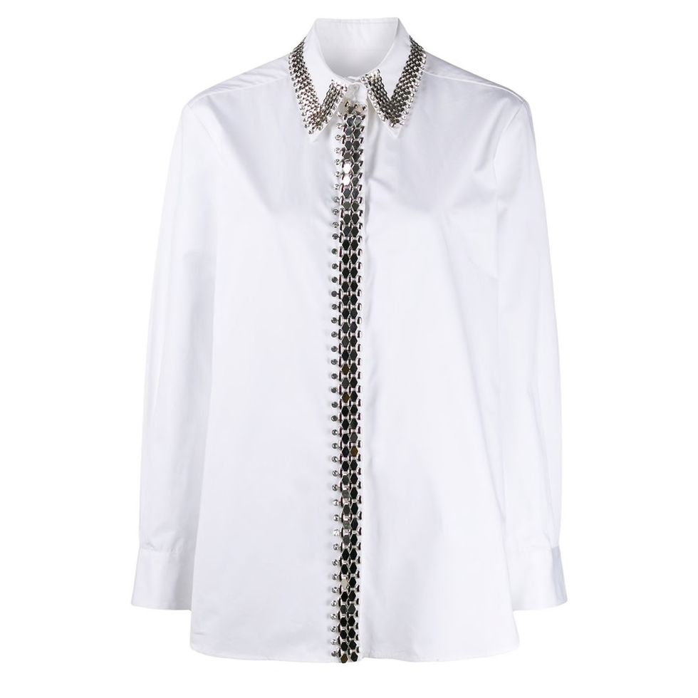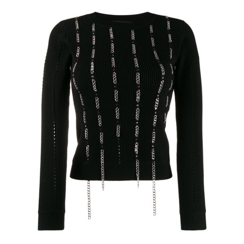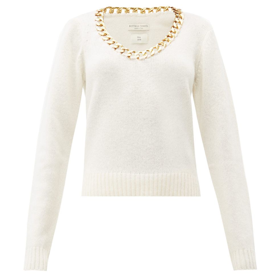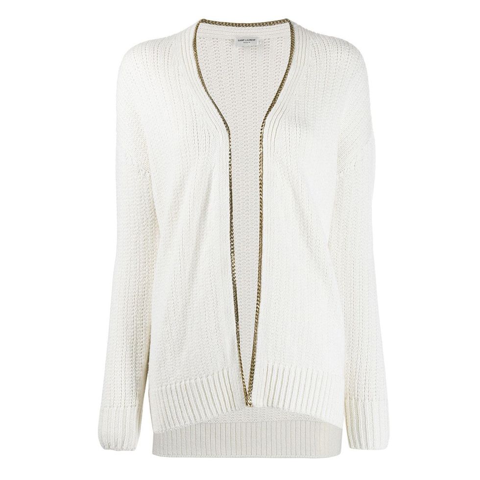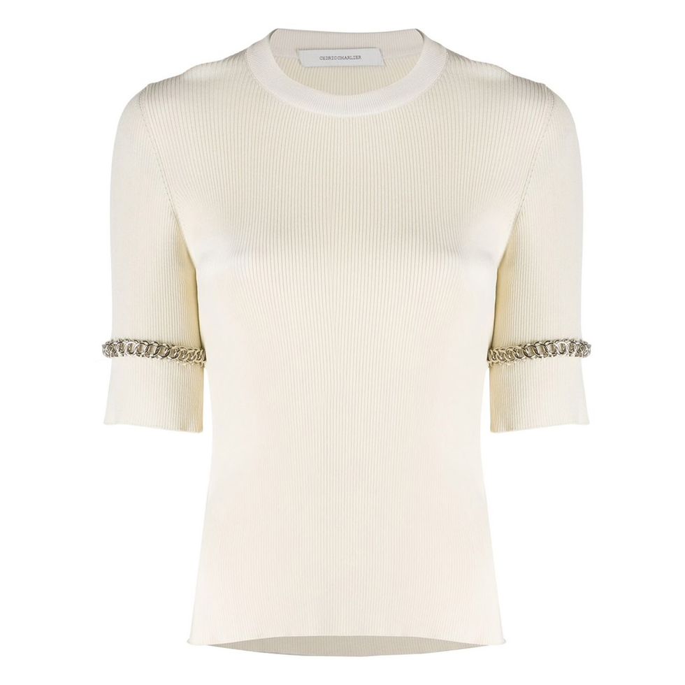Apparently, we’ve been sleeping on chains. While we cannot deny that they make fabulous necklaces and bag straps, designers this season showed us all the additional ways to incorporate a chain into our wardrobes. They made an appearance on necklines at Bottega Veneta and Khaite, as a belt at Off-White and Rejina Pyo, and as modern embellishments at Rokh and Dion Lee. We love to see a designer take something mundane, like a chain, and reinterpret it in new and interesting ways, which in turn adds a luxe element to simple pieces. Here are a few of our chain-embellished favorites.