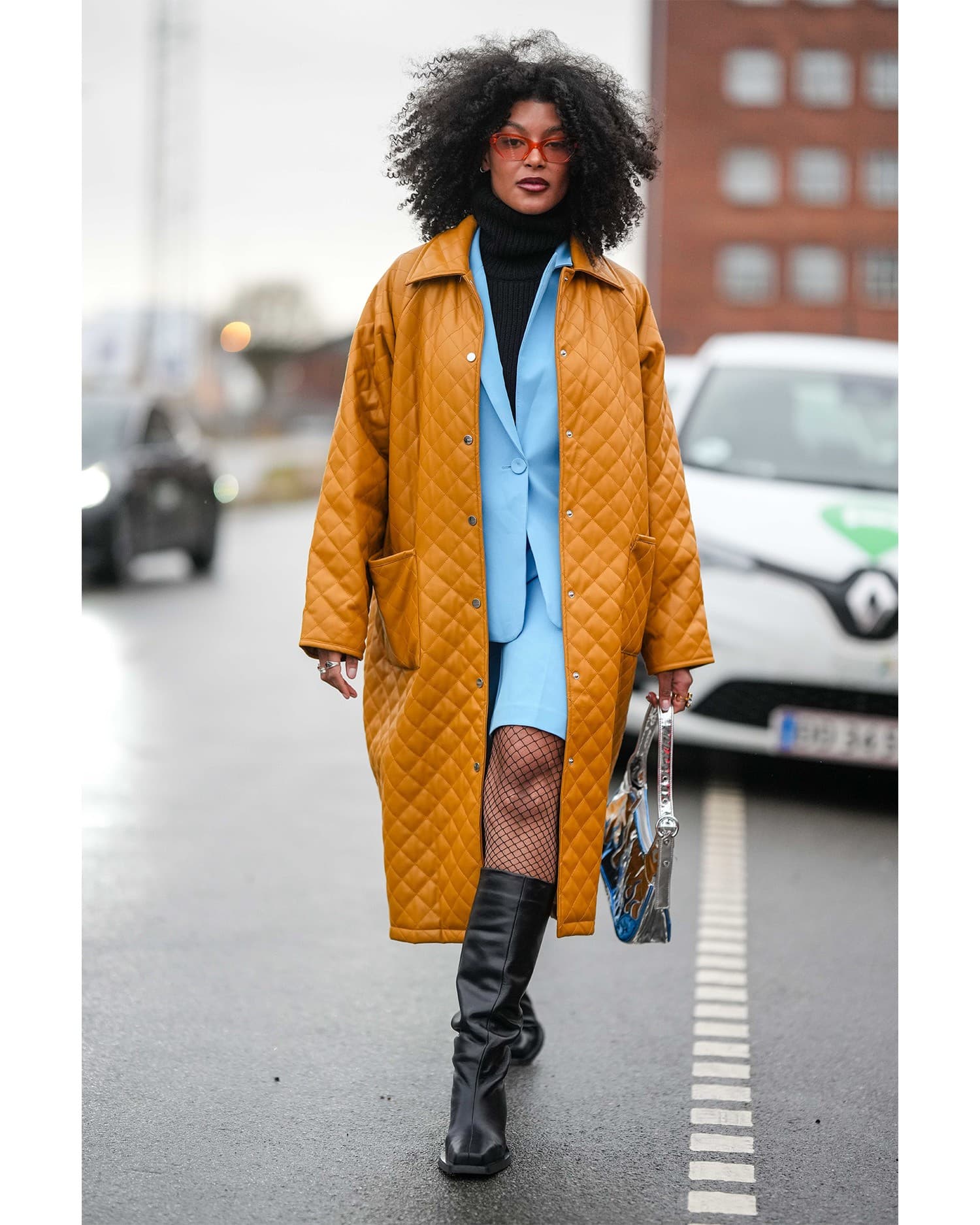 A matching blazer and tailored shorts set were not on my sartorial bingo card for this year, but this look has completely opened my mind. Pairing the set with a turtleneck and boots adds the cool-girl element and the fishnets are a fun, funky addition.