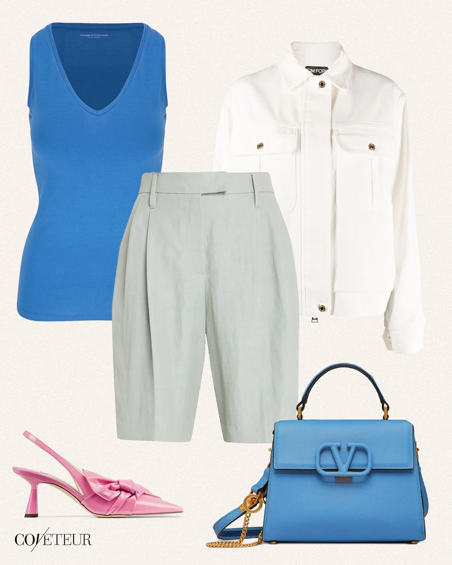 Cargo Shorts + White Jacket + Unexpected Shoe