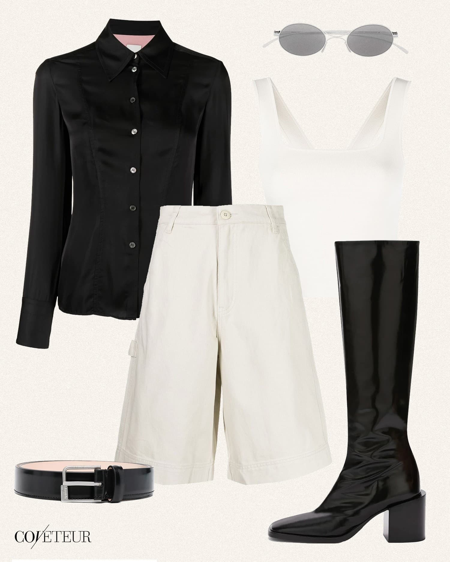 White Bermuda Shorts + Black Button-Down