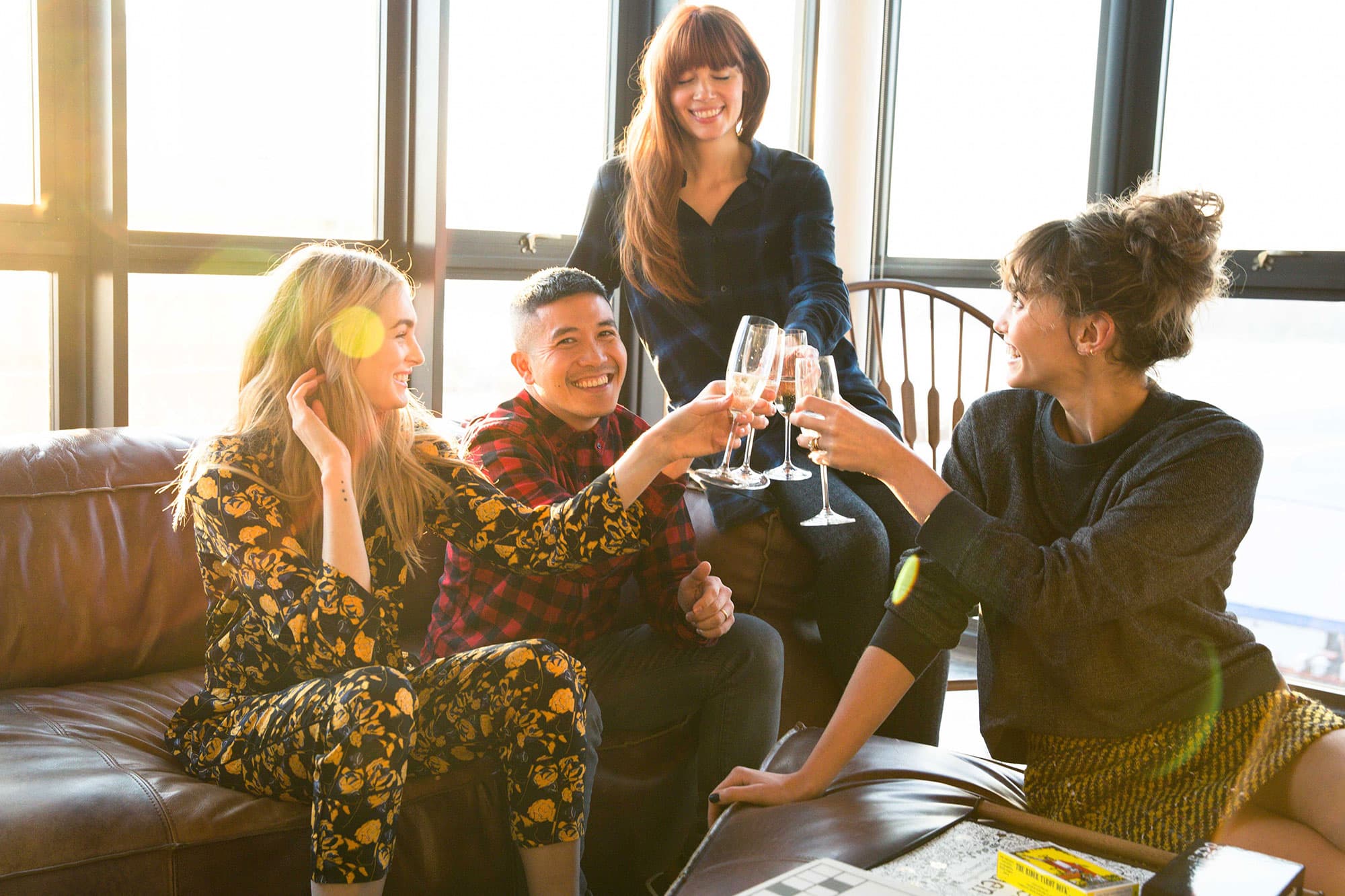 When I showed up to the penthouse suite at Brooklyn Wythe Hotel, I have to admit I felt a bit like the new girl in school. Brianna and Laura are old friends—the other thing we’re never too old for is feeling slightly intimidated when faced with two stunning, wildly creative pals—but they couldn’t have been friendlier or more welcoming. We may have even gotten in a champagne fight and formed a bathtub bobsled team in the room’s insane bathroom.