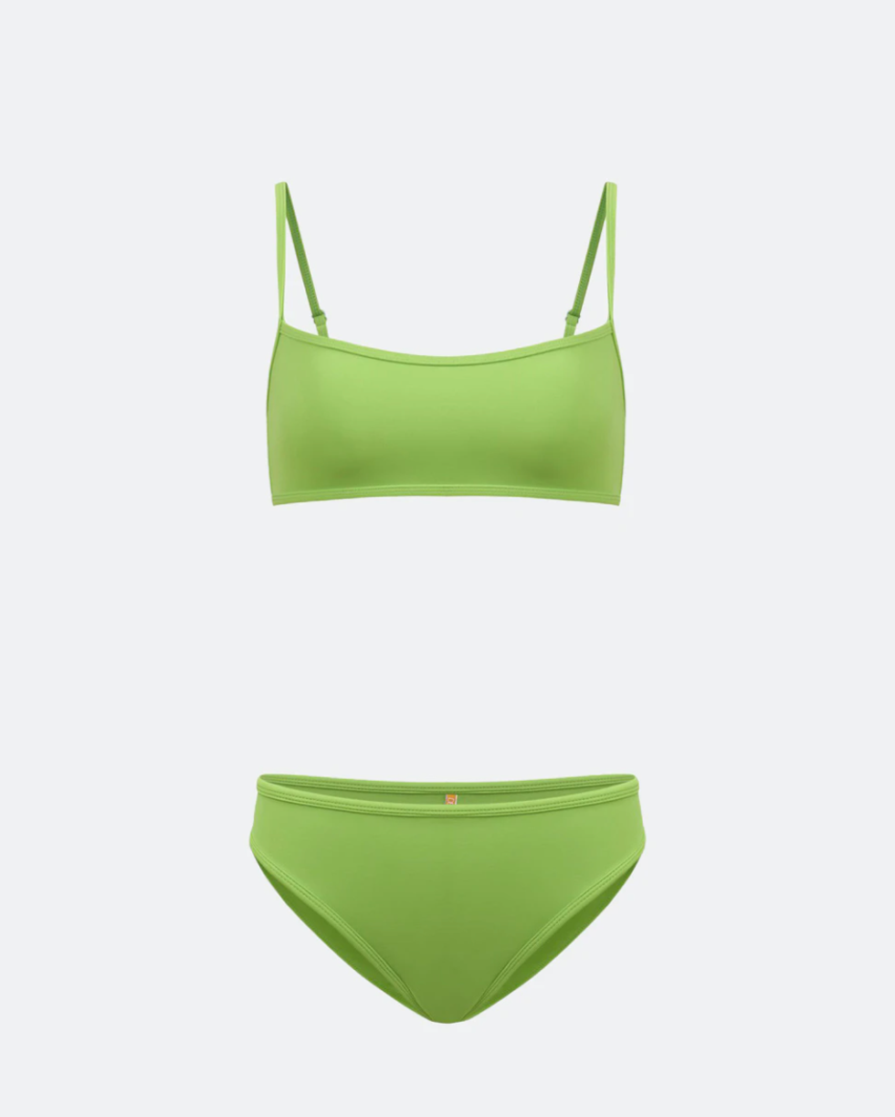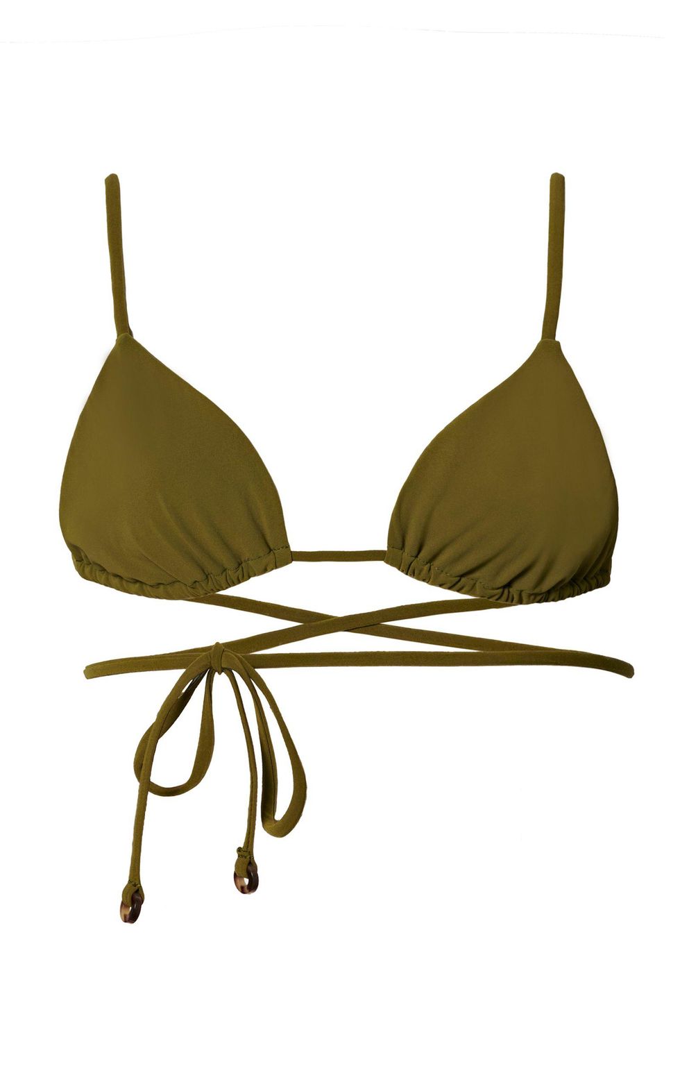 I love finding swimwear cut in classic silhouettes with one subtle interesting detail. In this case, I'm referring to the wraparound tie. I've also been drawn to a mid-rise cut for swimsuit bottoms—not too high, not too low. And in this simple olive shade, this will be my go-to style all summer. Just beware of tan lines!