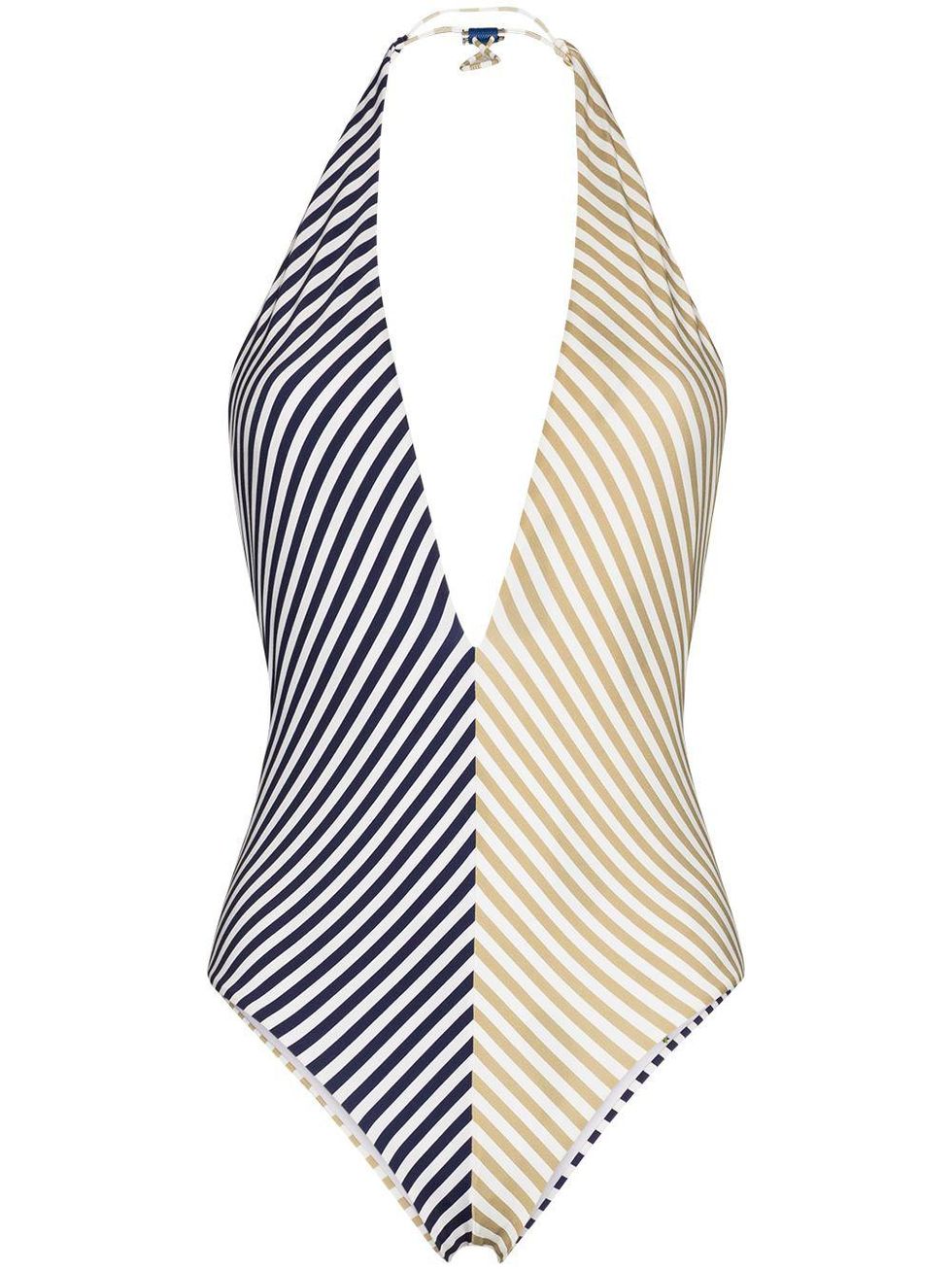 If I'm going to embrace color, it needs to be in muted hues and classic patterns. Enter this stylish Silvia Tcherassi number. I love the contrasting stripe and the way it meets along the center seam. The best part? It's reversible, which means two swimsuits for the price of one!