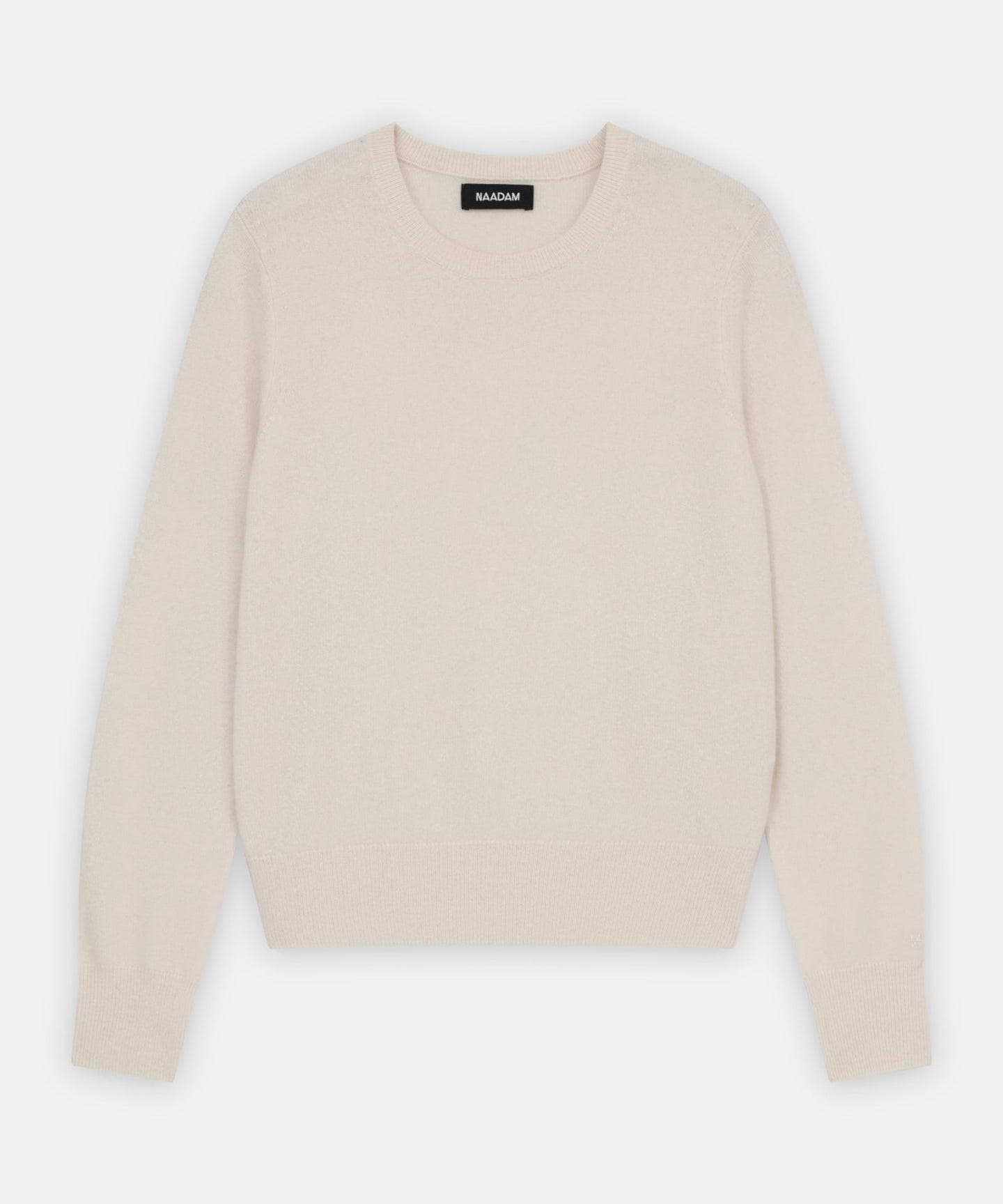 “Again, I love to do a wide-leg pant and a plain crewneck cashmere sweater if I have good jewelry, a good belt, and good shoes. I feel like that can be your whole look. I love crewneck sweaters from Nadaam, from Uniqlo, or from Quince. They all have really good cashmere crewneck sweater options, and I just stock up on those for layering pieces.”