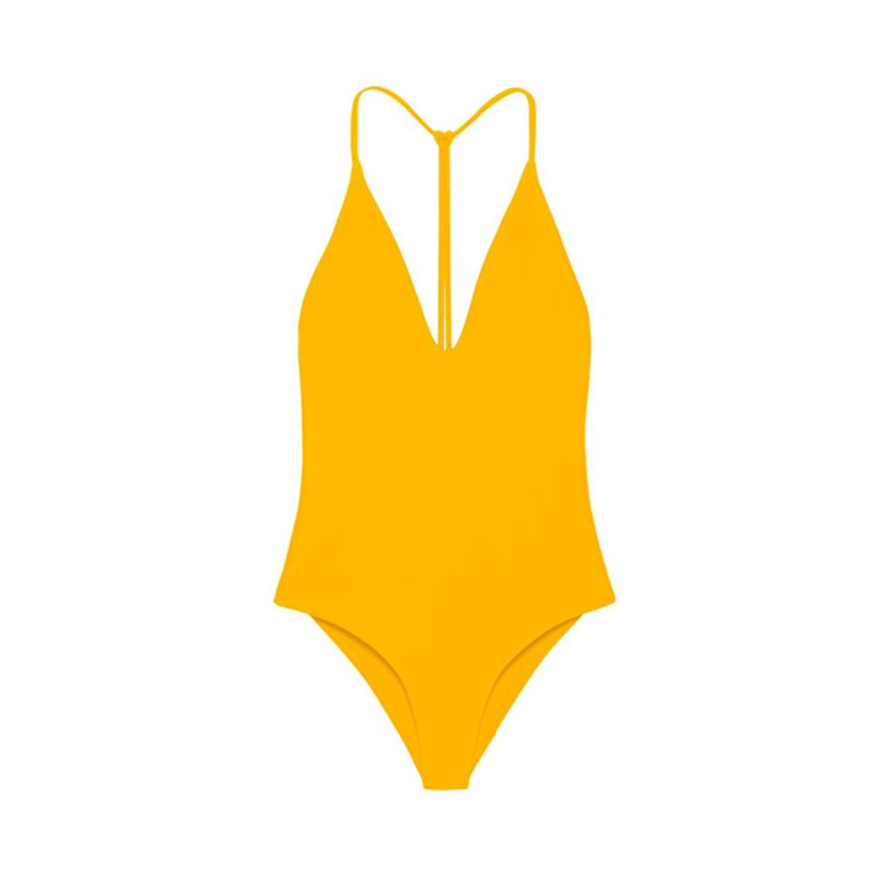 They’ve been popular for a bit, but the high-cut variety is really the wave this summer. And with bathing suits, you can apply other trends. Where we saw the gingham two-piece above, ribbed one-pieces (think ’90s, like the cut itself) are fun or good old Millennial Pink.