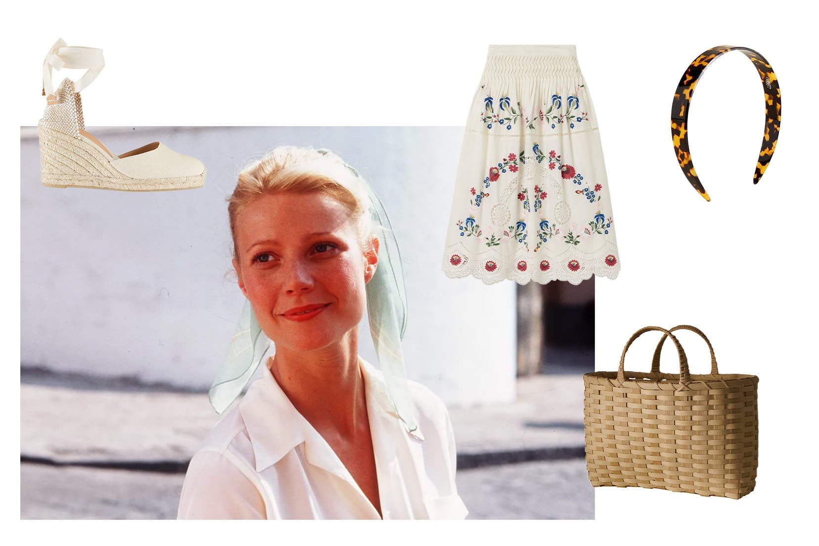 We would be remiss to omit this film from any summer movie list centered on style. The screen adaptation of Patricia Highsmith’s canonical novel, The Talented Mr. Ripley has provided mood board-worthy inspiration for decades—especially Gwyneth Paltrow’s character, Marge Sherwood—and given the timeless appeal of its aesthetic, shows no signs of falling out of favor. Think crisp white tops tied around the waist with patterned A-frame skirts, espadrilles and classic canvas sneakers, high-rise bikinis, basket bags, and of course, a headband or scarf for an extra feminine touch. Easy, romantic, and undeniably chic, it’s no surprise this wardrobe earned an Oscar nomination. Bring a bit of Ischia wherever you’re headed with a tie-front shirt, embroidered linen skirt, classic espadrilles, a woven carryall, and a tortoiseshell headband.