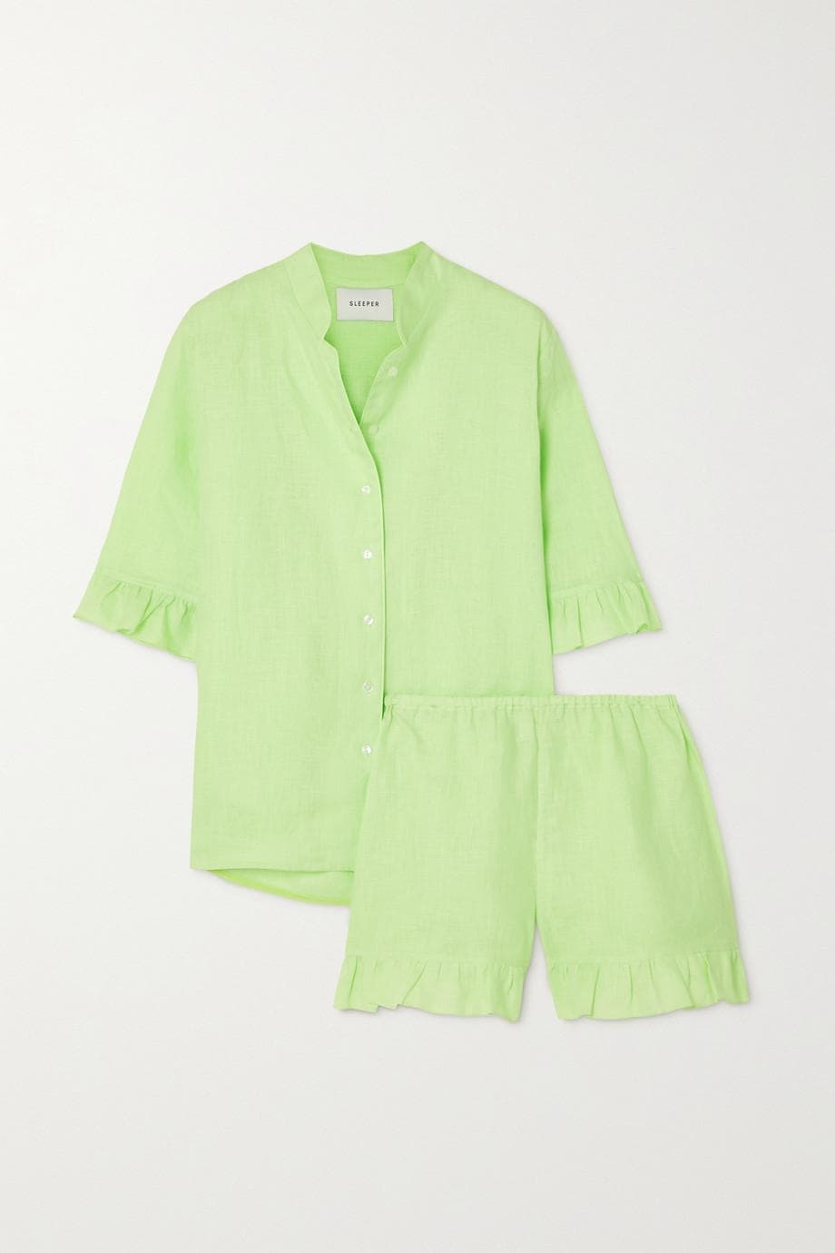 An easy two-piece is also the perfect casual take on a classic suit. A loose-fitting blouse that can be tucked in or worn open atop a bralette like a blazer offers variation and convenience, while a matching boxer-style short made from linen lends the look of tailoring. Together, the pair is a no-brainer for summer, and unlike the color-coordinated lounge wear we became accustomed to last winter, matching short sets seem to fit into every lifestyle. So much so that we predict them to be this summer's ideal uniform. Ahead we've rounded up the best variations to try before the warm months are over.