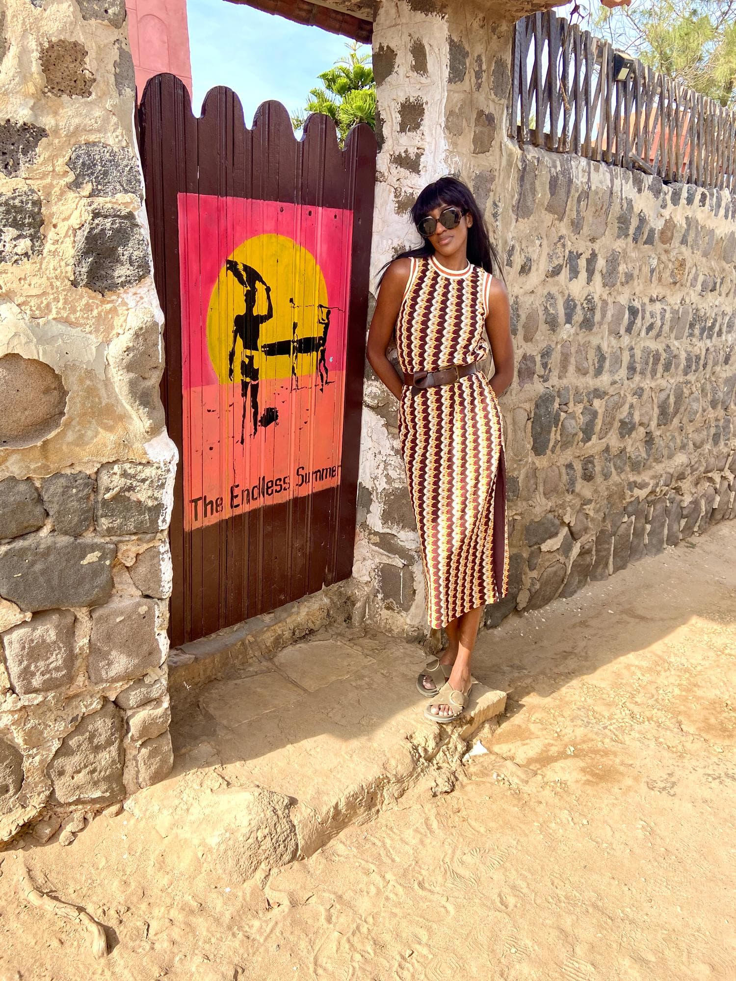Photo: Courtesy of Peju Famojure"It's quite ironic that I would like to travel to an almost isolated area after being isolated for over a year. But I'd like to travel to Namibia, one of my bucket list destinations. It's slightly remote, yet insanely beautiful and serene. I'll be packing this Missoni crochet bucket hat, this cool MSB exposed dress, and some Hermes sandals."