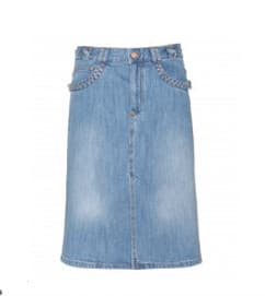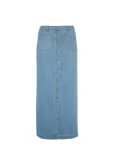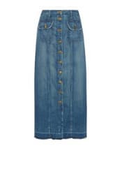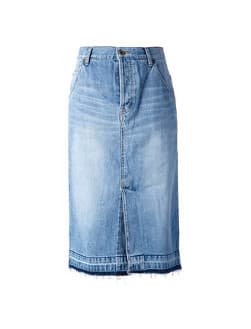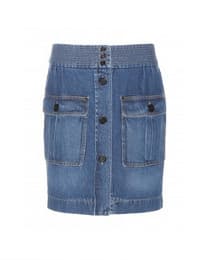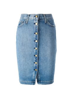 Whenever we think of denim skirts, we can’t help but throw it back to that fateful day in 2001 when Britney and Justin decided to drape themselves in what we can only imagine to be 50 pounds of matching denim, complete with acid-washed cowboy hat and clutch. Hashtag jean-age dream. While we won’t be wearing floor-skimming patchwork indigo in the foreseeable future (or at least we hope not), denim skirts have that Seventeen Magazine nostalgia we’re drawn to like a middle-schooler to Dr. Pepper Lip Smackers.