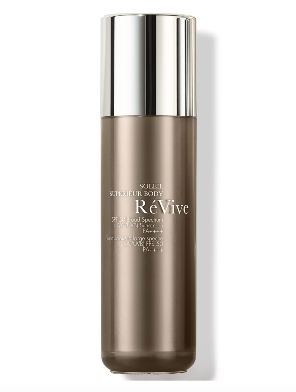 Suncare is especially important in the summer. I'm excited to try this luxurious and efficacious sunscreen from Revive, which features advanced UV protection to protect the skin. Having high-quality luggage is very important when traveling as well. This multiwheel suitcase from Rimowa is both durable and lightweight. It’s also roomy enough to fit heavier shoes and accessories.”