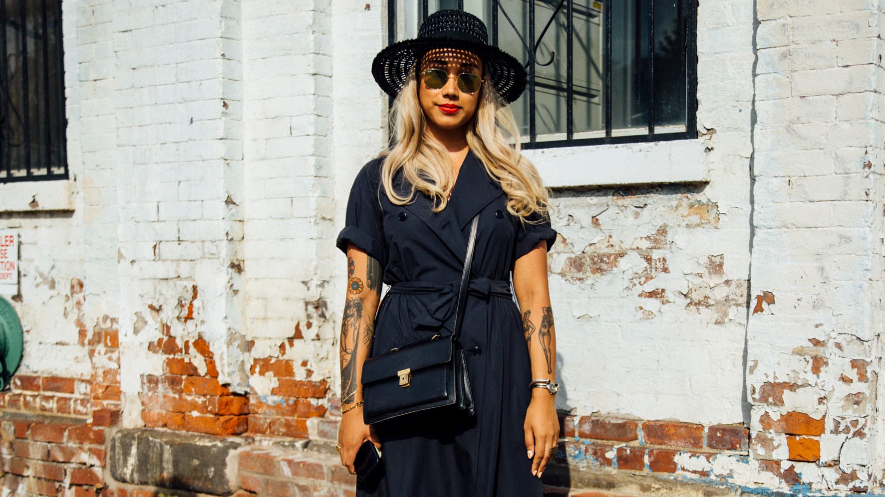We dream of summer afternoons spent in rose gardens while sipping tea. Although that scene feels a little unreachable at the moment, we can still dress like we’re headed to a picnic. The refined Victorian style of Nishimoto’s pieces pair perfectly with black ribbons throughout the hair and some patent leather loafers. Tie this look together by blotting a vibrant pink lipstick onto the lips and cheekbones for a monochromatic flushed look.
