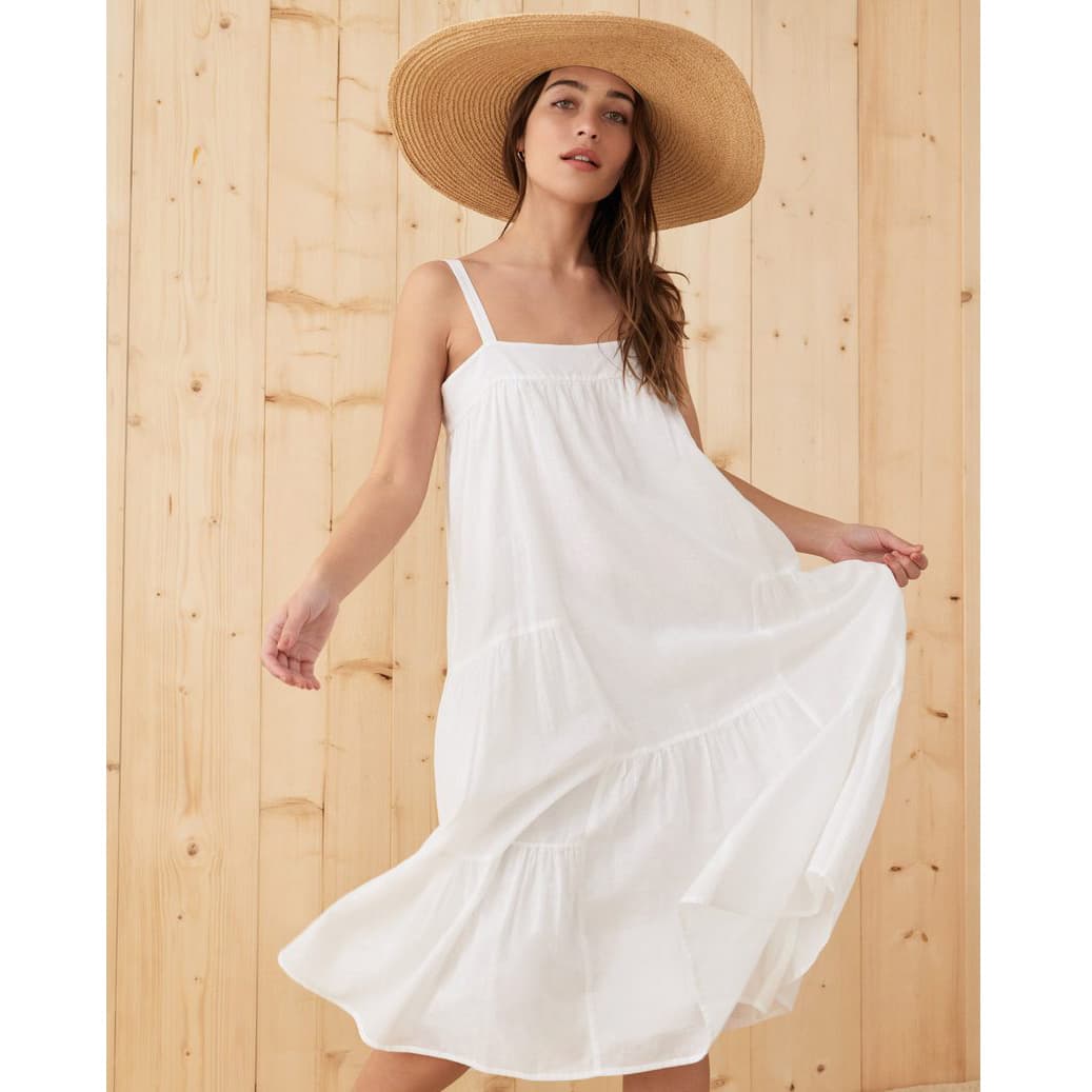 The perfect combination for spending summers near the shore. This breezy white dress is ideal for barefoot walks through sand, or paired with sandals while taking a stroll through the city. Take this classic white summer dress up a notch by applying a swipe of stunning