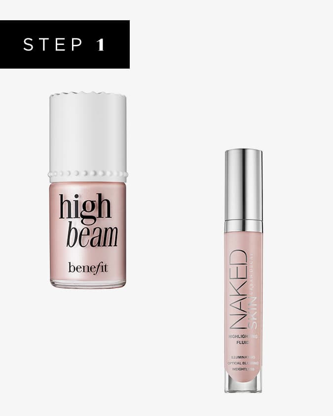 Here’s the basic concept: Start with liquid and cream formulas of highlighter and blush (we’re going to be skipping the contour on this one), and then add on powder highlighter and blush over the top. This combo not only helps the makeup last longer, since powder “sets” the cream, but it really ramps up that glow factor and basically turns you into a world-famous model and best friend of Frida. [*Madonna’s “Ray of Light” starts playing.*]