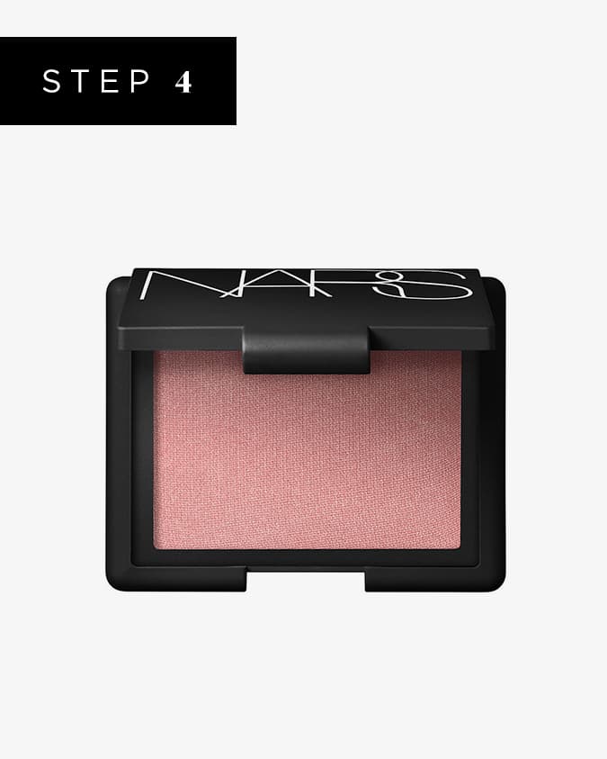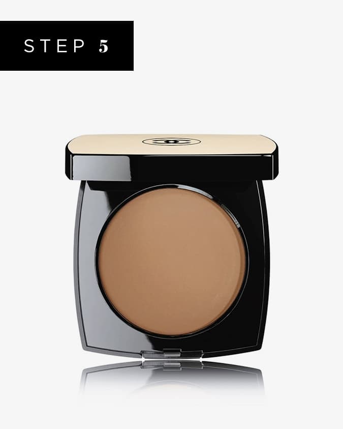 Following the same theory as Step 3, layering on a powder blush to your cream blush benefits both the lasting power and the impact of the look. With the same fan brush or a large one like