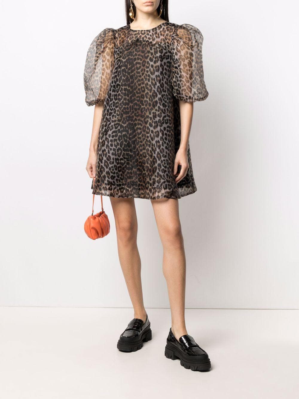 Puff-sleeve Leopard-print Dress