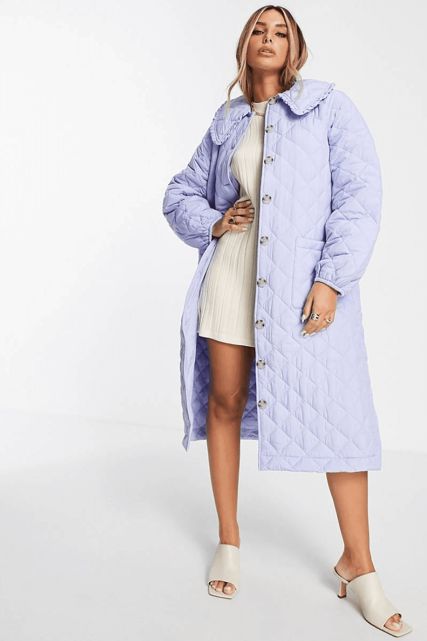 Quilted Maxi Coat with Bib Collar