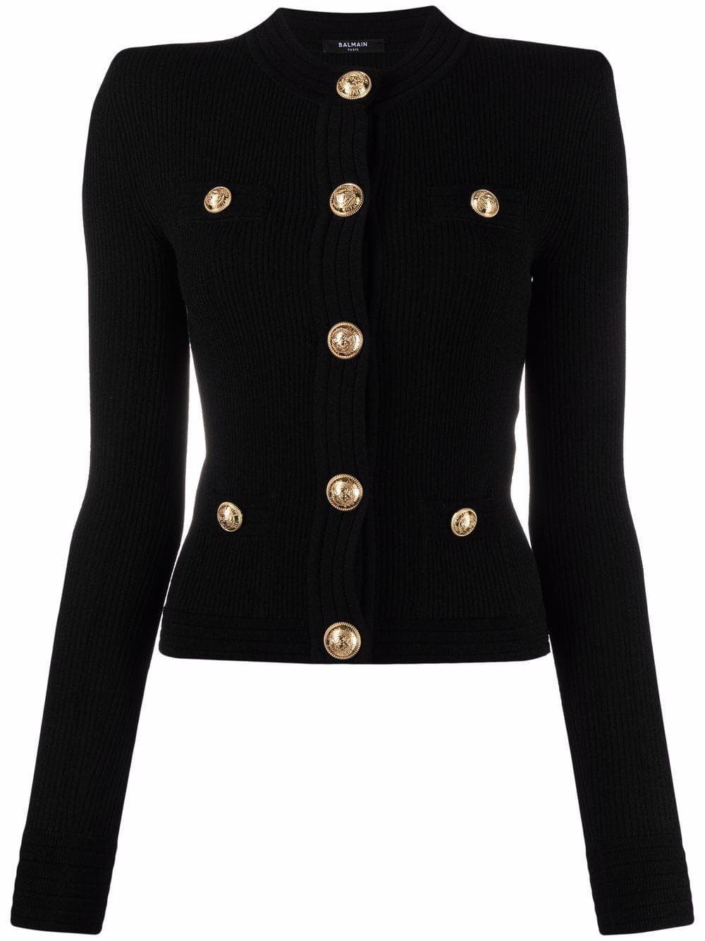 Button-embellished Ribbed Cardigan