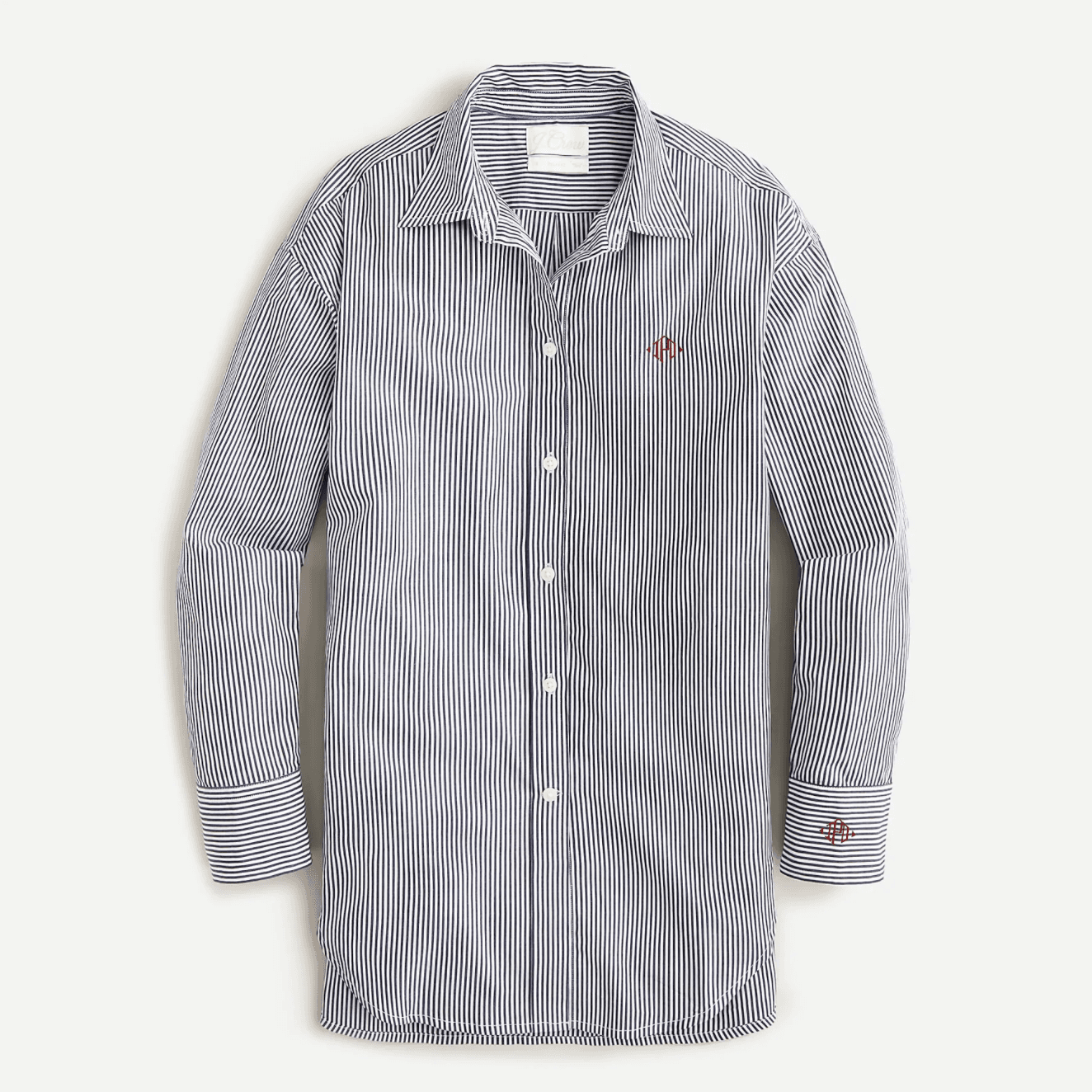 Relaxed Fit Crisp Cotton Poplin Shirt in Navy Stripe