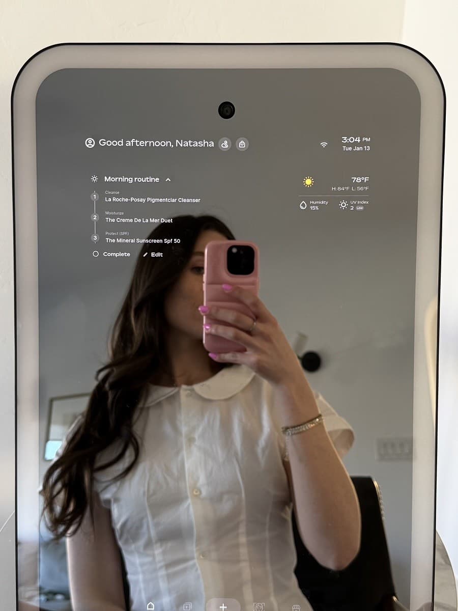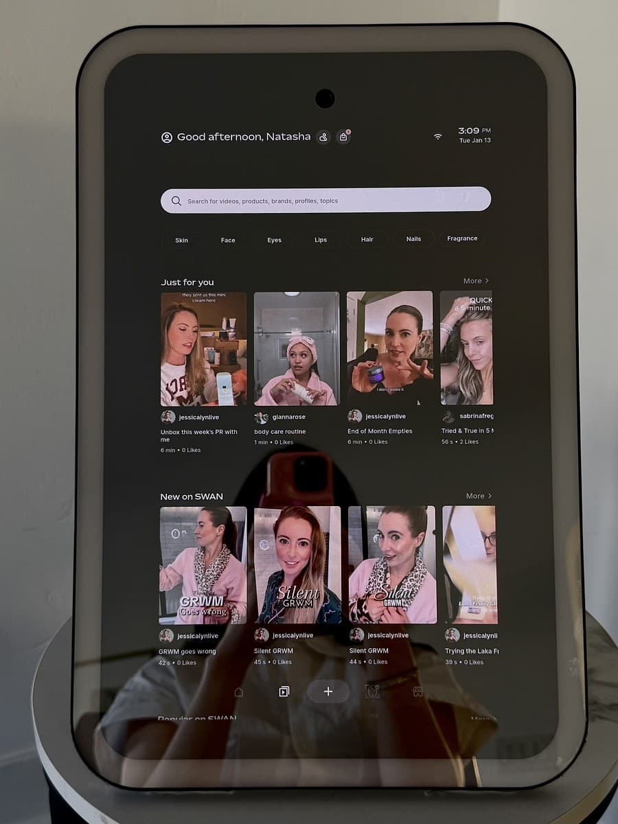 Even though it felt a little Black Mirror‑esque at first, I honestly am so impressed by how futuristic this mirror is. It does feel a little like having a friend doing skincare and beauty with me every day. It’s definitely a splurge, and there are elements that I'm not sure I'd continue using, but if you're looking for a smart mirror that can help streamline your skincare and makeup routine, the SWAN mirror does just that.