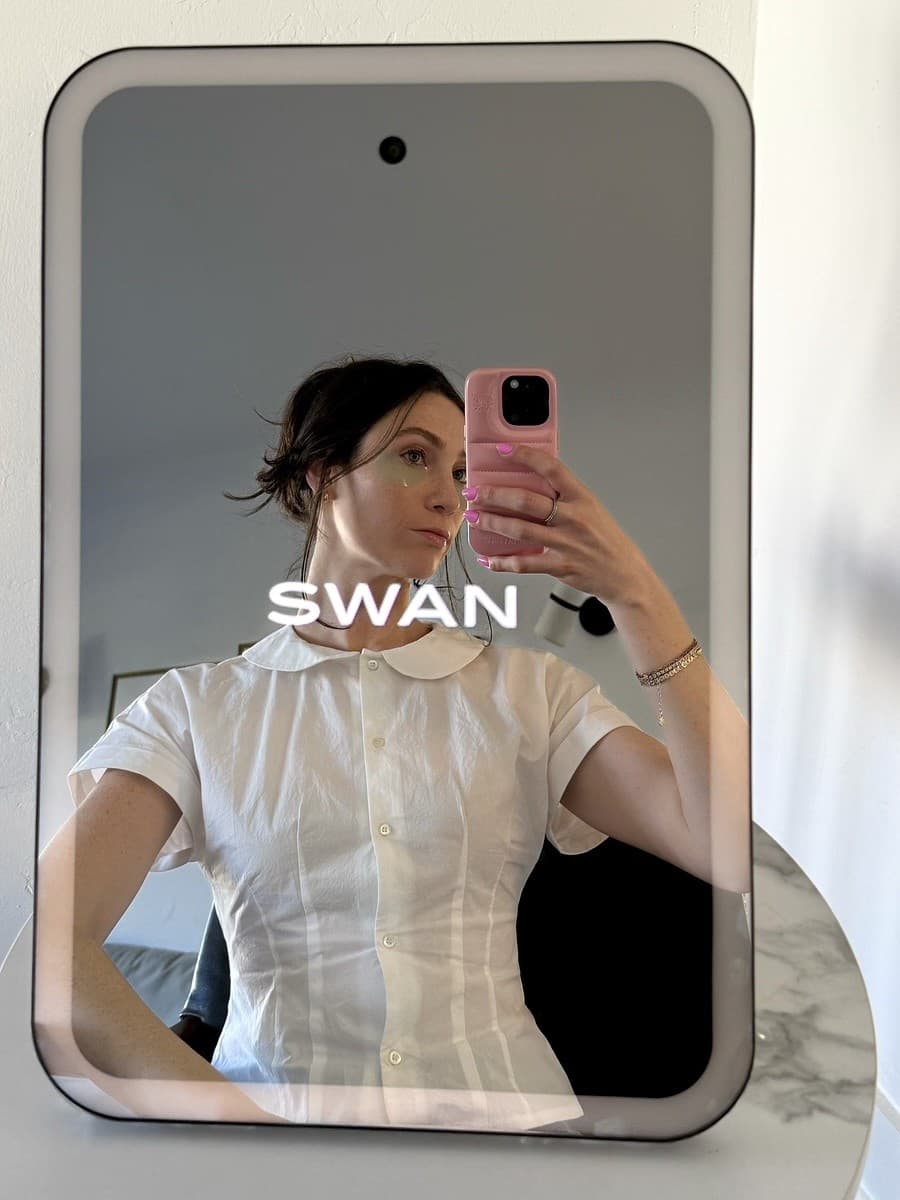 Imagine a friendlier, smarter version of Snow White’s magic mirror—except instead of asking if I’m the fairest of them all, it actually shows me how to be. Meet: The SWAN Mirror. Powered by AI and AR, it analyzes your skin, offers a built-in pro makeup artist, tracks your routines, records video, provides an exclusive marketplace to discover new products, and delivers personalized recommendations—believe it or not, the list could go on. It constantly updates and evolves as your skin does. I’ll admit, the term “AI” initially made me skeptical. I couldn’t imagine how it could possibly be better than my generic Amazon ring light mirror that’s been getting the job done for years. That said, it definitely looks better on my vanity—and once I started using it, I quickly realized it does a lot more than just look pretty. The experience feels intuitive, personalized, and surprisingly helpful, almost like having a beauty expert built right into your daily routine.