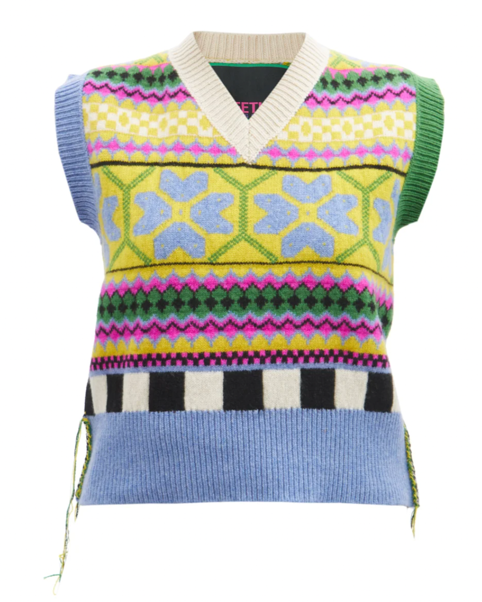 Combining two trends in one, this Fair Isle sweater vest doesn’t need a ton of help to make a killer outfit. Layer it over a basic button-down, add some bold accessories, and you’re good to go.