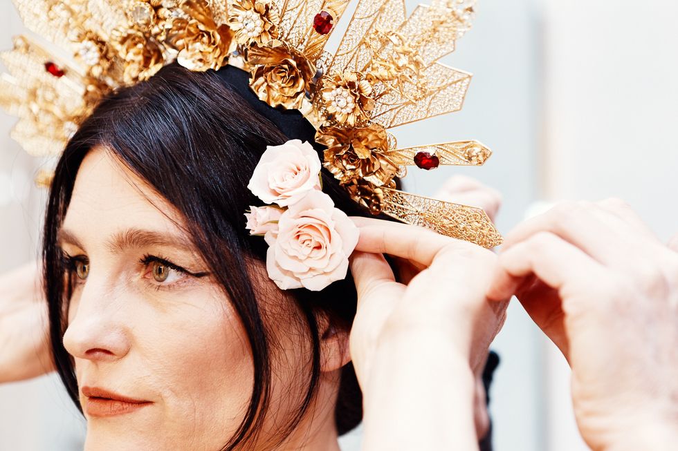 In between weaving fresh flowers into her hair—courtesy of Domenico Dolce and Stefano Gabbana themselves—and quickly pumping breast milk before shimmying into her dress (the realest getting-ready step we’ve encountered), the new mother happily gave us the rundown on her whole Met Gala look, her favorite part of the evening, and the friend she loves to split a bowl of bolognese with before hitting the red carpet.