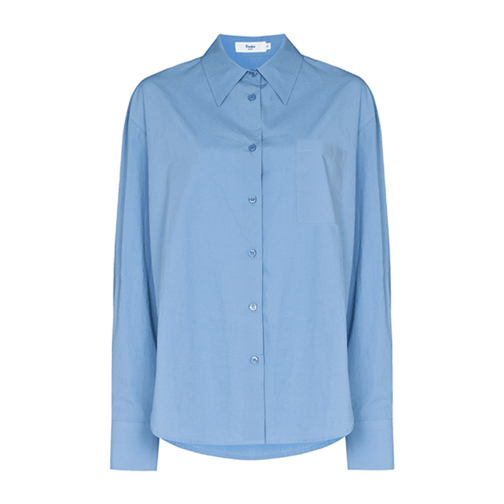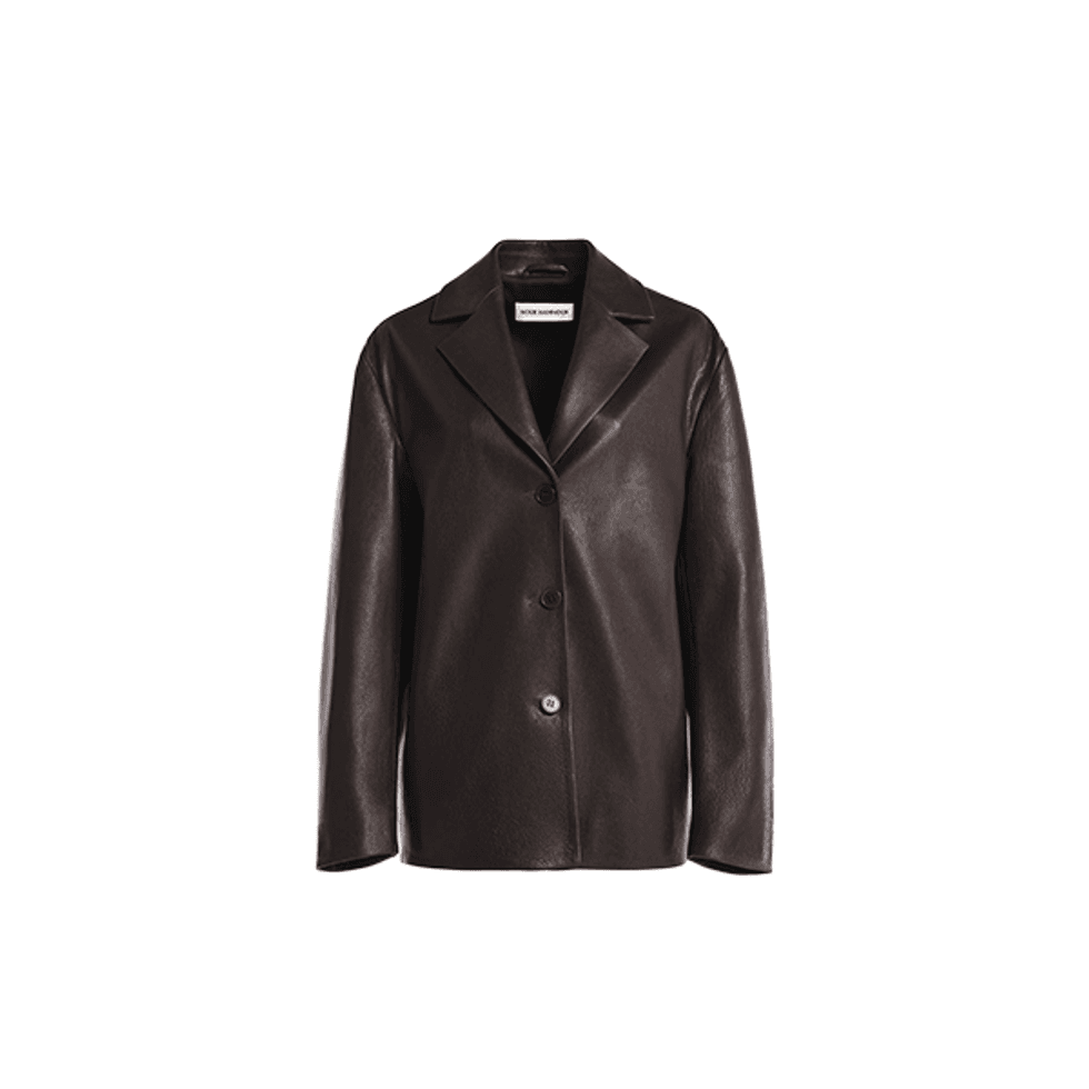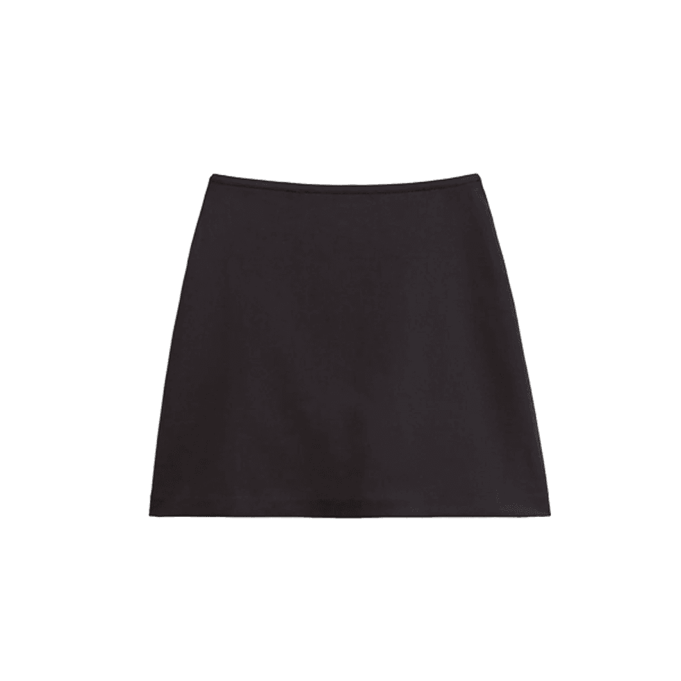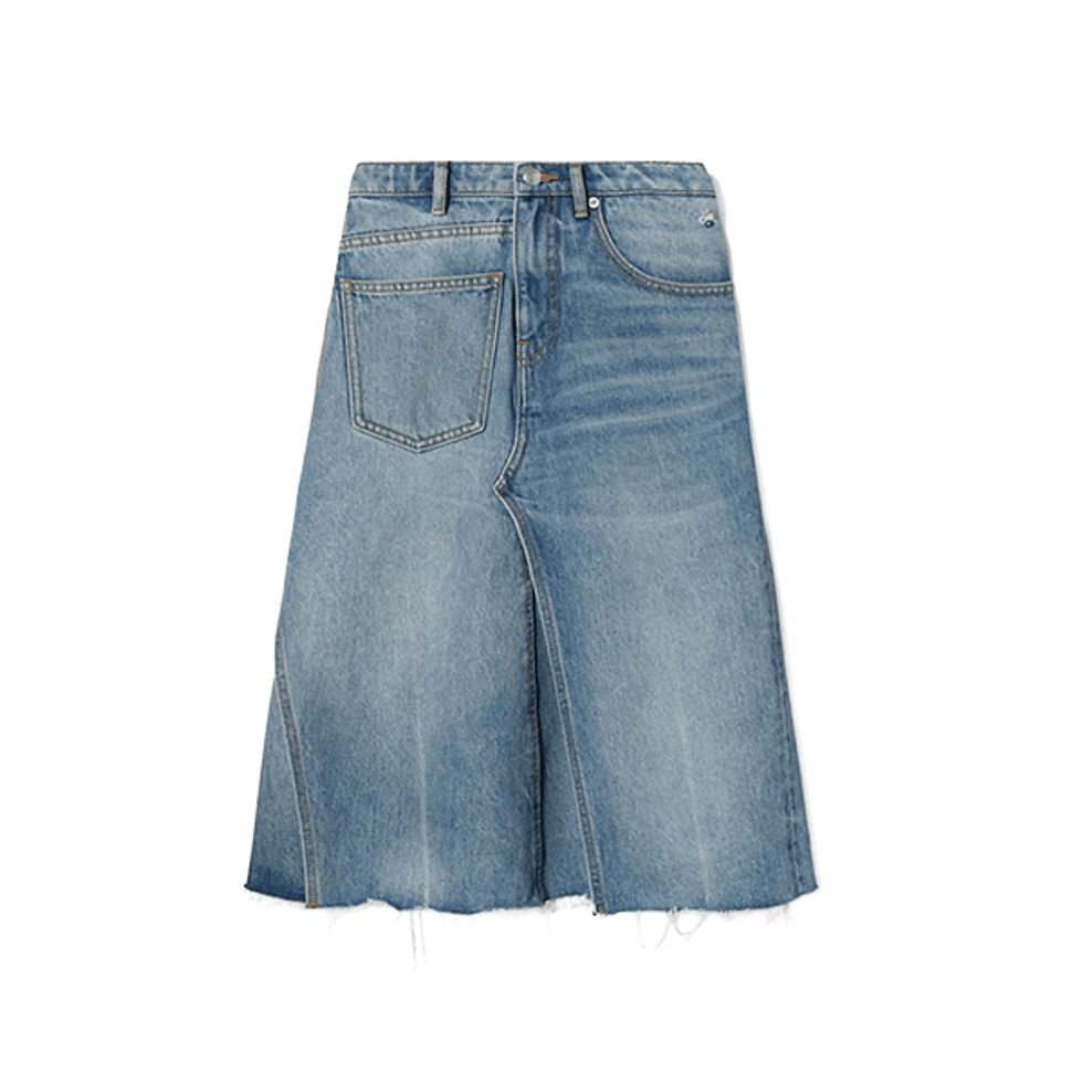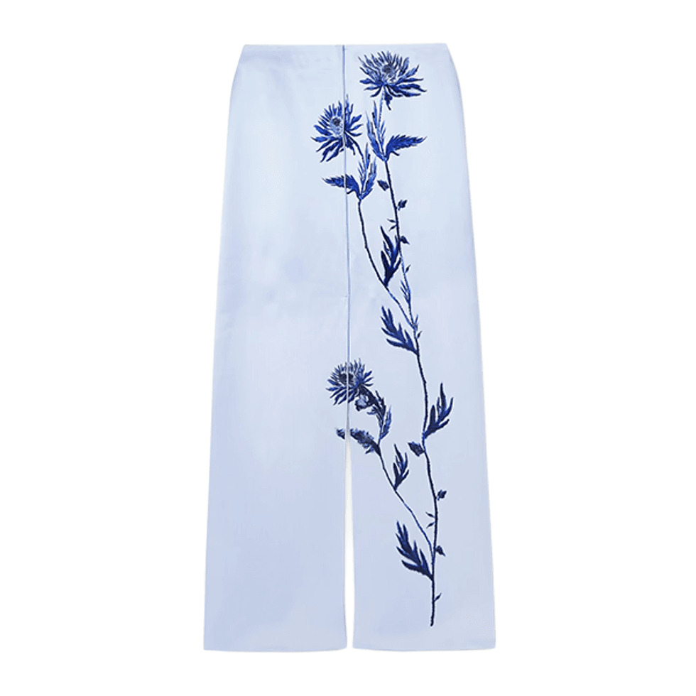 At first glance, this Tory Burch look might seem quite simple, but the magic lies in the details. Beyond the navy-coat-and-denim-skirt combo, you’ll notice fishnets peek out at the knees, and shirt cuffs stick out from beneath the coat’s sleeves. This look is the perfect balance of nostalgic, with '90s and early 2000's elements, and modern. Add a croc bag and a pair of aviators, and you’re ready to go.