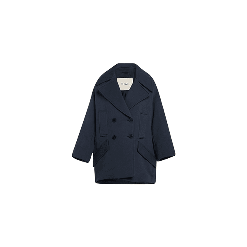 Denim Skirt + Peacoat + Fishnet Tights