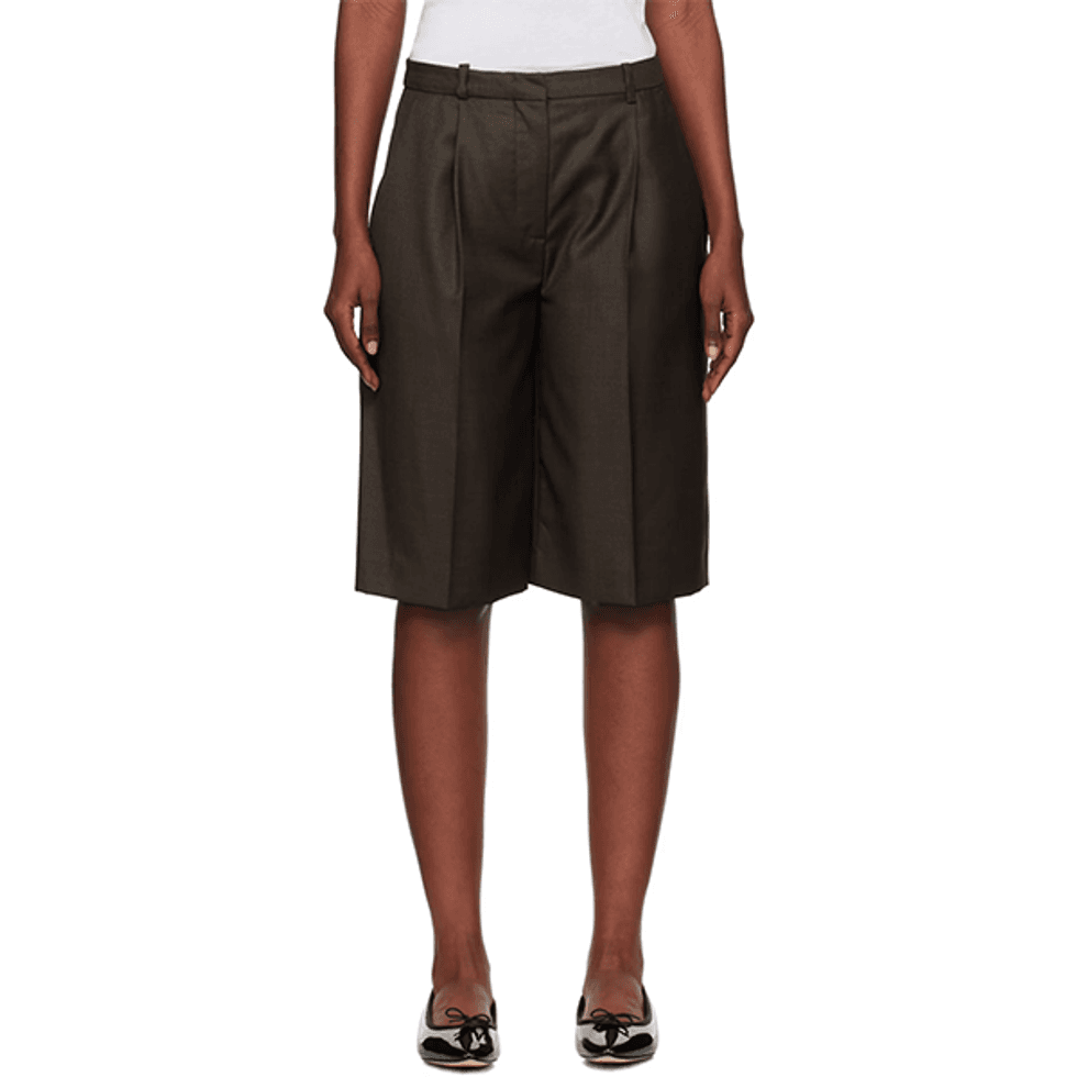 Lemaire stole my heart with their whole Fall ‘23 collection, but this look, in particular, has held a residence in my mind ever since. I love the slinky boots with the wide-leg Bermuda shorts, the aviator jacket with the crisp shirting. With mismatched long and cropped silhouettes, the tall boots balance the look perfectly. You truly can’t go wrong.