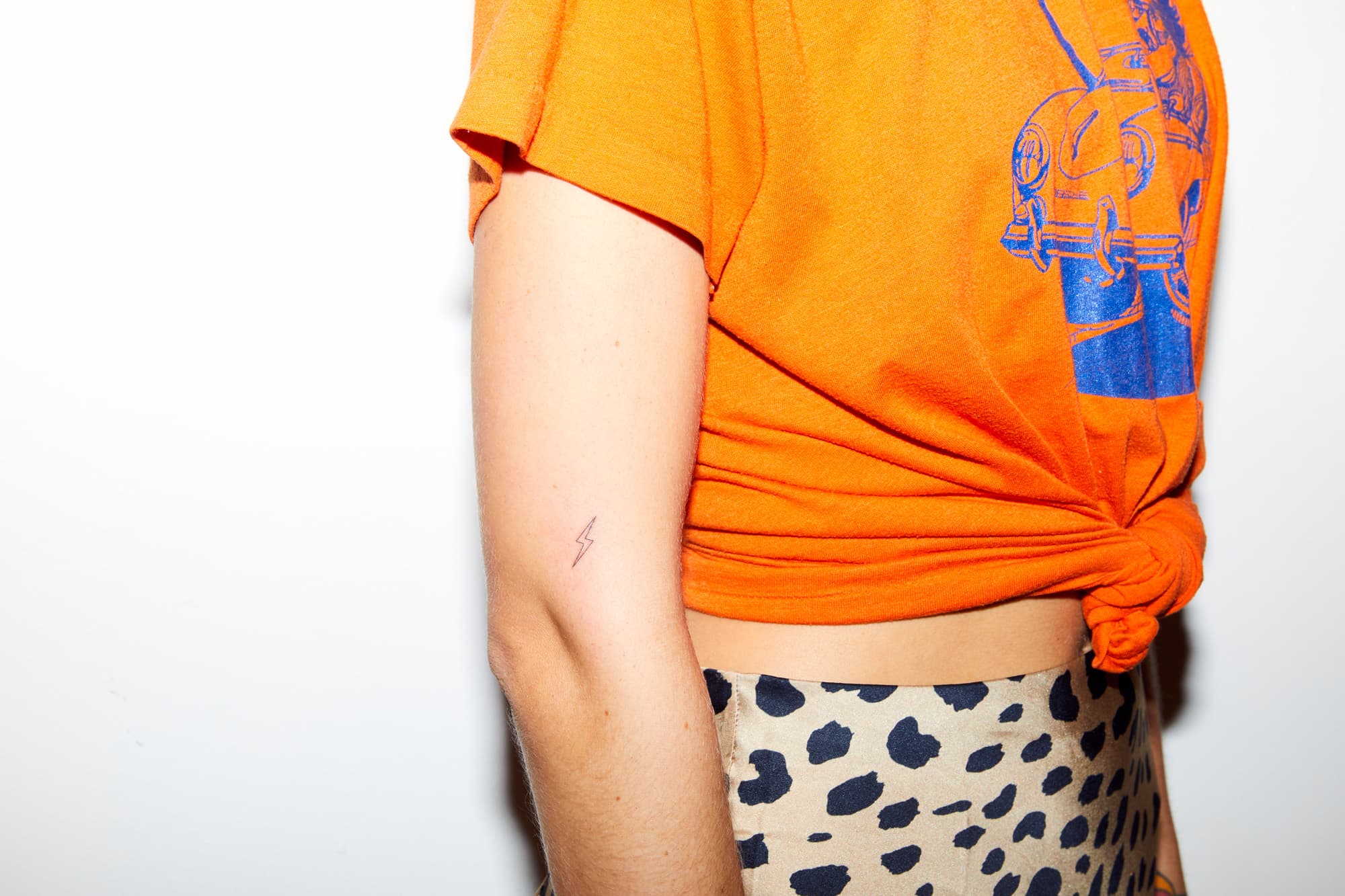 In less than three minutes, Winter wipes down my elbow, and a crisp black lightning bolt is revealed. The ink is almost impossibly thin—I doubt I’ve ever applied eyeliner so finely. “I look at it as tattoo jewelry,” he says as I admire my new piece from every angle. “It’s like little trinkets, little memoirs. It holds a very special meaning to people.”