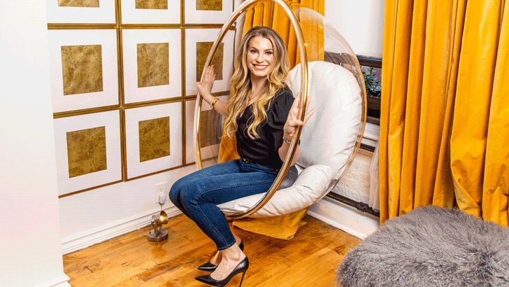 “It was really scary. I had a lot of meltdowns. But I have to say, it is one of the best decisions I have ever made. I’m so much happier. I walk to work, and I call the shots. I thought of every little detail, like having the cell phone chargers [for clients]. I definitely wanted downtown vibes [for the decor]. It all started with the concrete walls, or the concrete wallpaper, and the yellow couch, and it kind of just went from there. My mom helped me, which is amazing. She’s a developer, and she likes to find everything for half the price. So we would go to Restoration Hardware, look at their things, and just copy it for half the price [