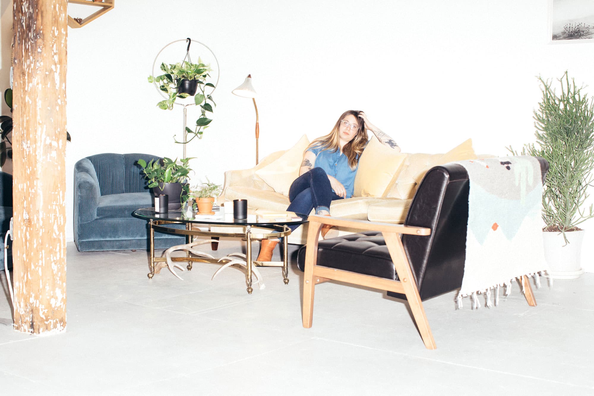 I meet Tea Leigh, one of the co-founders of Welcome Home, at her sun-drenched studio tucked away in one of north Greenpoint’s most industrial sectors, and am immediately struck by the nine-foot tree blossoming in the corner. “It came with the space!” she exclaims while showing me around the shop. The chic waiting area complete with vintage velvet couches feels more like a familiar living room than a business and offers clients a complete view of the minimalist room. Everything is calm, transparent, and aesthetically pleasing. “Part of the reason we named it ‘Welcome Home’ is because we wanted you to walk in and [think], ‘I am totally safe here. Anything I say doesnt leave these walls.’”
