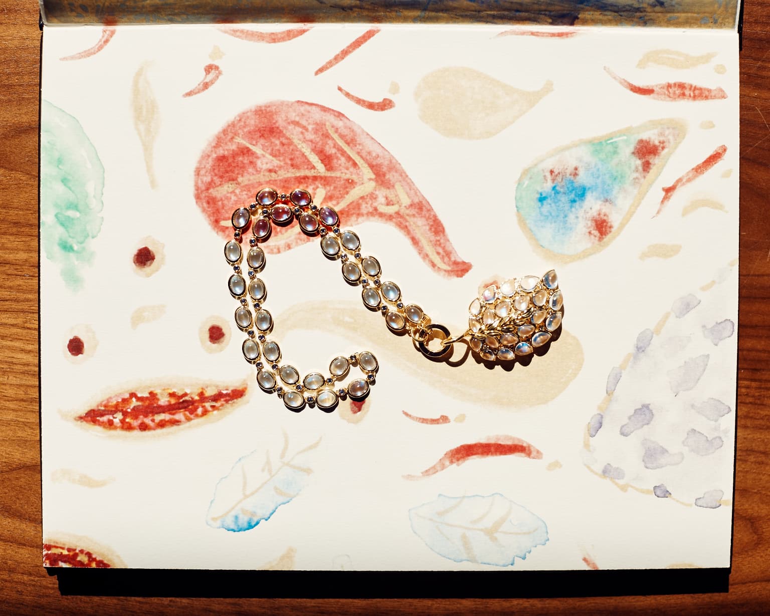 Then you start to really look at her pieces—heavy orbs of rock crystal wrapped in strands of gold dotted with gemstones, or miniature fantastic beasts rendered in the most intricate detail, or pyramid-shaped emerald cabochons that have been smooshed into heavy gold rings—and you fall a little deeper in love with her world. “I got here by chance. I completely fell into the world of jewelry,” she tells us. “In my twenties, I was studying Italian renaissance literature, and was pursuing a (somewhat) nomadic lifestyle that let me maintain my insatiable interest and curiosity in things.”