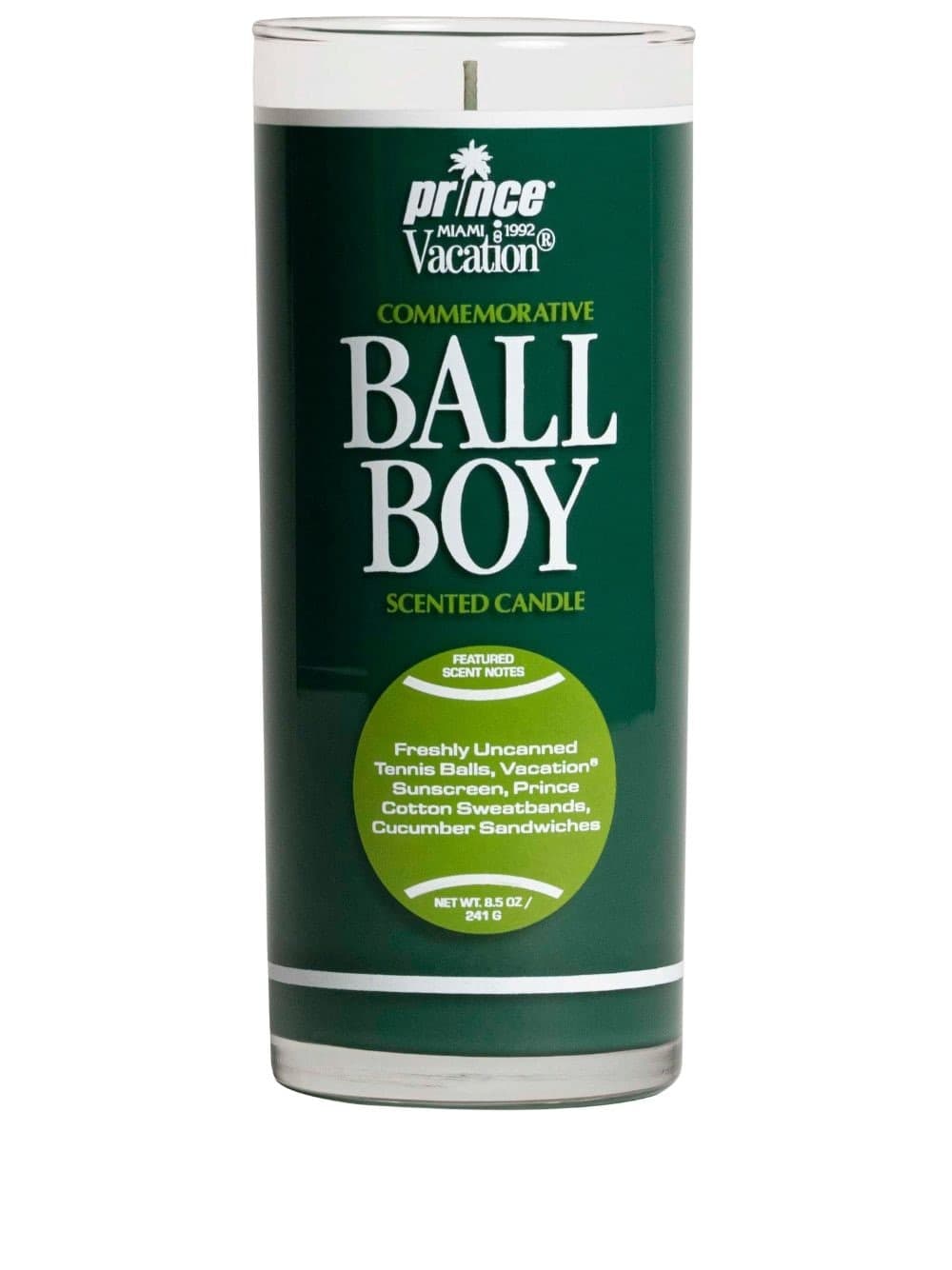 Soft Lawn was a part of Imaginary Author’s first product launch about a decade ago. A couple of years ago, Meyer updated the scent with some of the same notes and the same materials. The fragrance is still one of the brand’s most talked about scents. Meyer believes this is because fresh tennis balls are included in the perfume’s notes. “It's just one of those smells people recognize.” Fresh tennis balls are also in the fragrance notes for Vacation’s candle collaboration with Prince. “Anyone who plays tennis usually has a love for the scent of freshly uncanned tennis balls and the fond memories they evoke. This was our starting point,” says Lach Hall, cofounder of Vacation. “But we didn't stop there. We wanted to capture the scent of the entire courtside setting so we layered in notes of our sunscreen scent, Prince cotton sweatbands, as well as a hint of courtside cucumber sandwiches.”