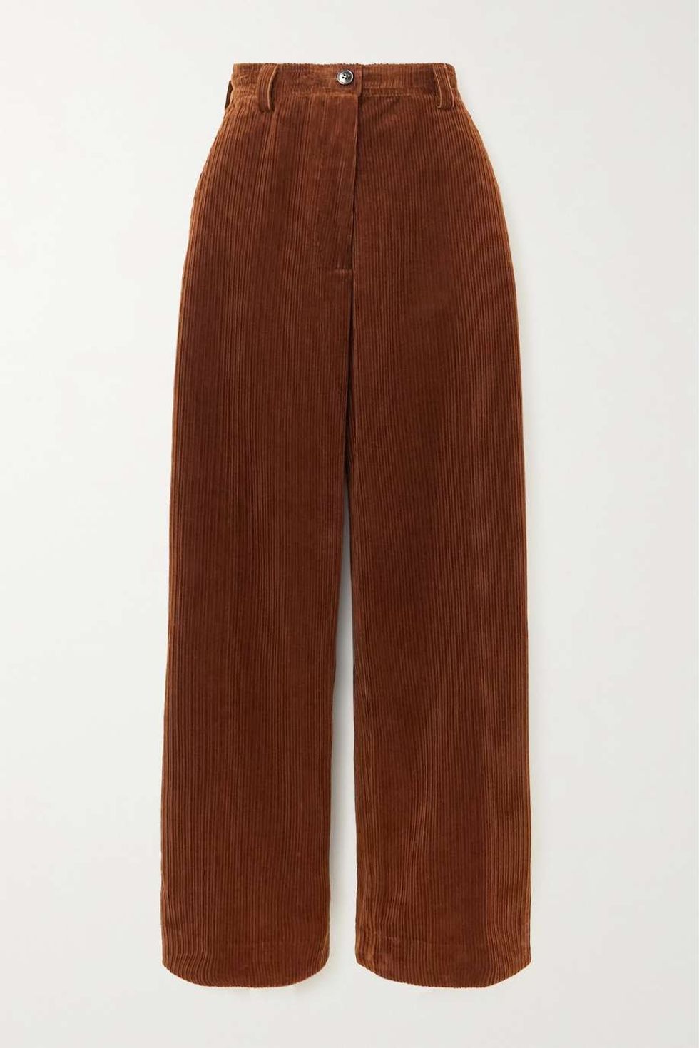 At Loewe, Jonathan Anderson showed a knit quarter zip layered over a stark white button-down. The yummy brown hue of the pants channels the fall season, while the silver flats add a much-needed dash of femininity to the simple ensemble.