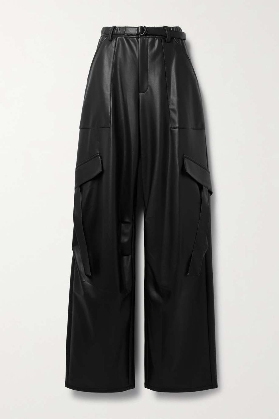 If you’re looking for extra warmth, opt for a chunky multicolored knit. Swap your sweatpants for a pair of ultra-comfortable faux leather trousers and indulge in white in the only space we’ll allow: the handbag.