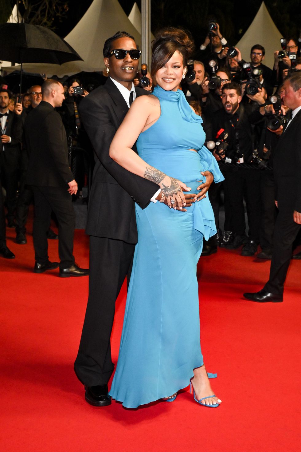 On the red carpet, Alexa Chung and Alex Consani opted for all black looks. Chung in Balenciaga and Consani in Schiaparelli. Rihanna and A$AP Rocky arrived for their Cannes red carpet debut looking the part, as usual, Rihanna wearing a vibrant blue draped Alaïa gown and Rocky in a classic black Miu Miu suit.