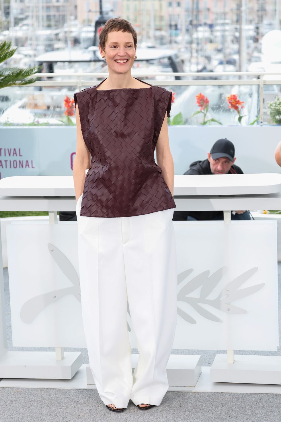 Elsewhere, Dakota Johnson appeared at a photo call in a simple black Gucci dress, while Barbara Palvin stepped out in a white strapless corset dress, and Vicky Krieps posed at the Love Me Tender photo call in a backless leather intrecciato Bottega Veneta top.