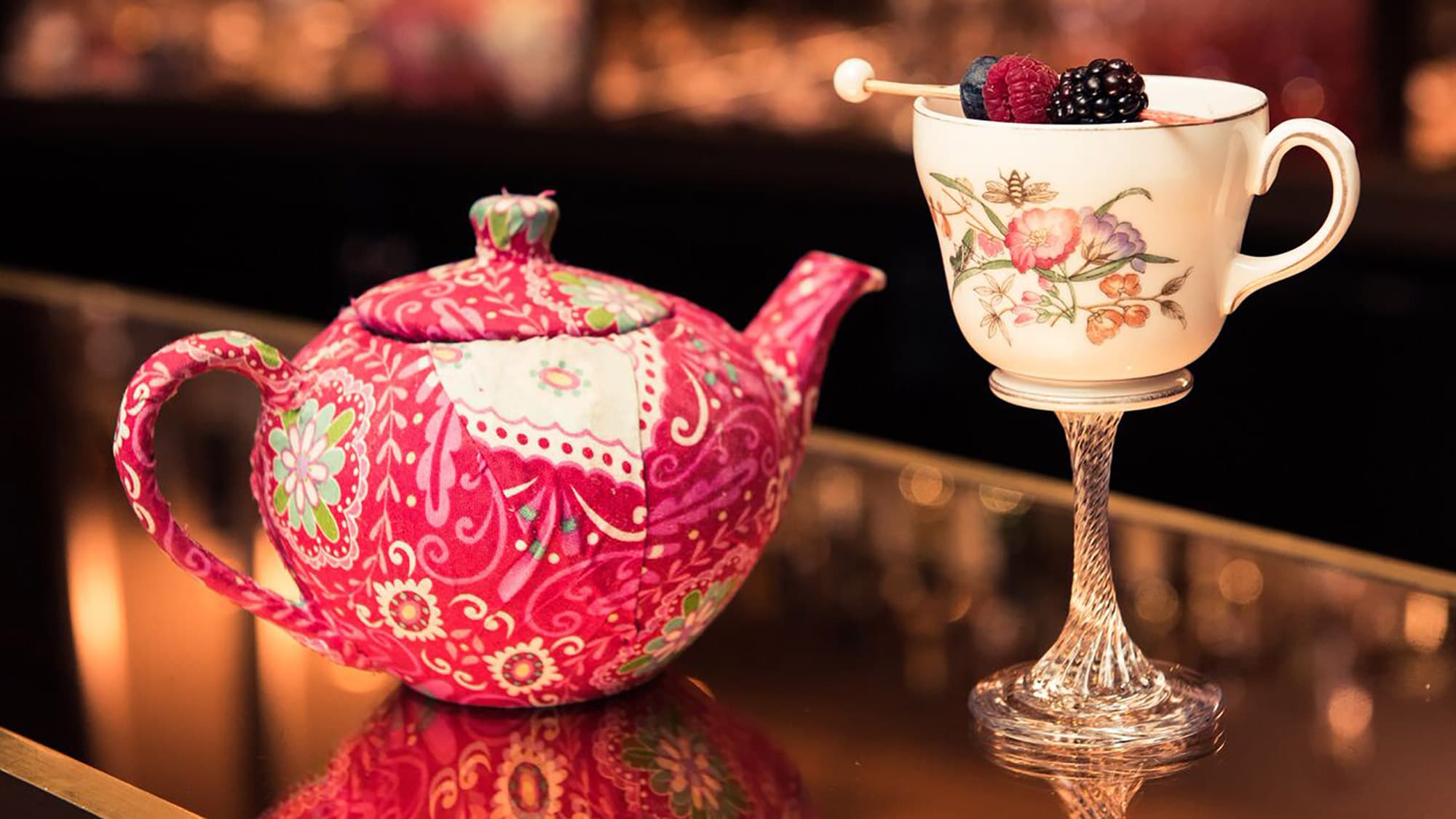 It’s officially the season for holiday parties, and what could be more festive than an adult beverage served out of a teapot? This recipe is the brainchild of The Bar at The Dorchester Hotel in London, the most elegant (and British) place imaginable. With gorgeous accommodations, a luxe spa, the best high tea in town, and a restaurant with three (!!!) Michelin stars, The Dorchester is one of our absolute favorite places to stay. The Bar at The Dorchester is just as excellent as the hotel’s other facilities, serving up classic and creative concoctions alike. Inspired by the queen of England herself, “Her Majesty’s Cup” combines ingredients like Earl Grey tea, fresh berries, rhubarb syrup, and gin. All of this goodness is mixed together in a teapot, topped with champagne, and served out into individual tea cups. Cue all the jokes about having a few too many of these and “spilling the tea.” Here’s how to make it.