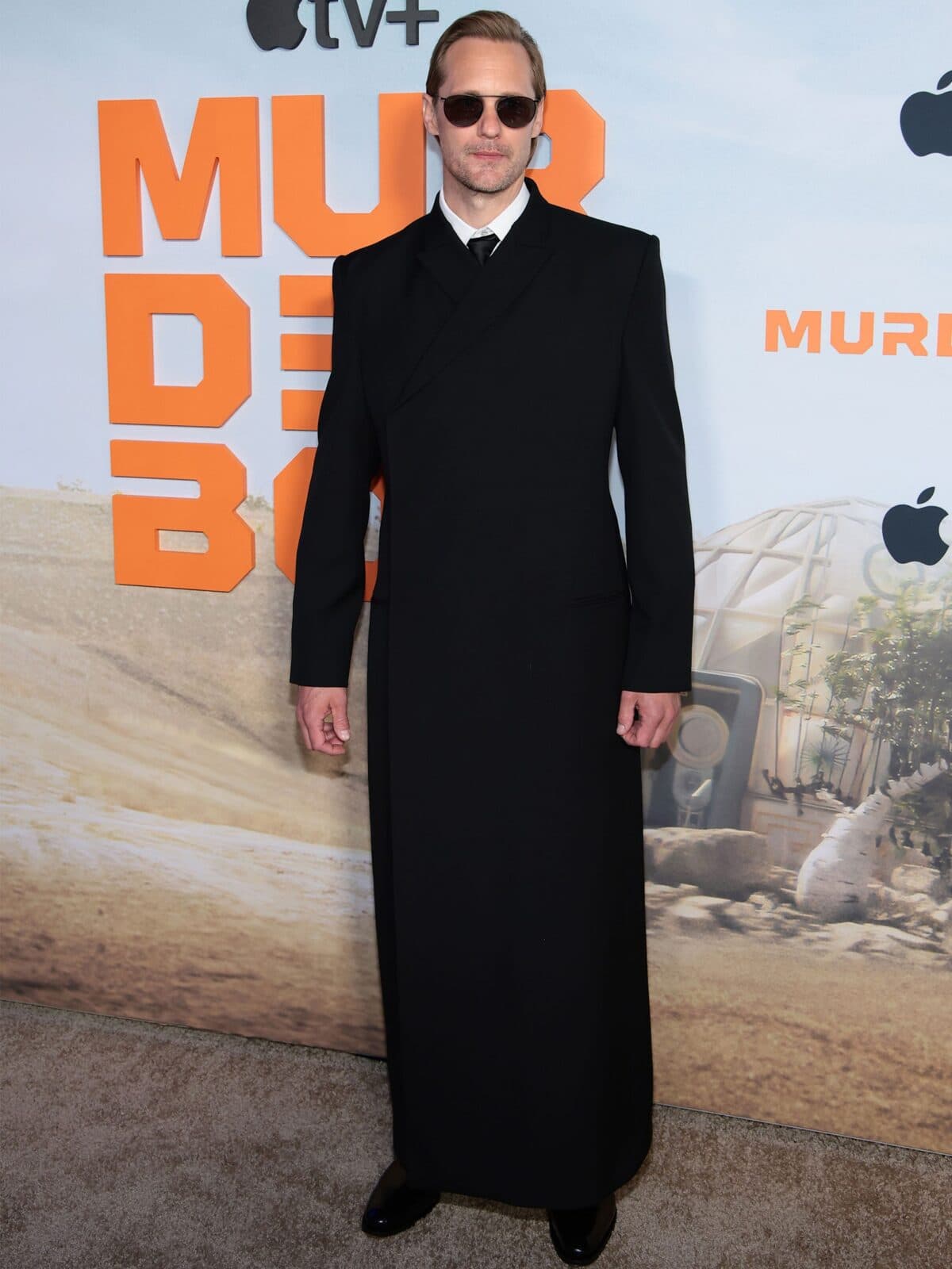 Dimitrios Kambouris/Getty ImagesThere were also a couple of celebrity sightings that caught my eye in the wardrobe department this week. At the Murderbot premiere in New York, Alexander Skarsgaard stepped out in a custom Calvin Klein look, featuring a floor length tailored black dinner coat, a white button down shirt, a tie and small, dark sunglasses as an homage to the '90s. I loved it!