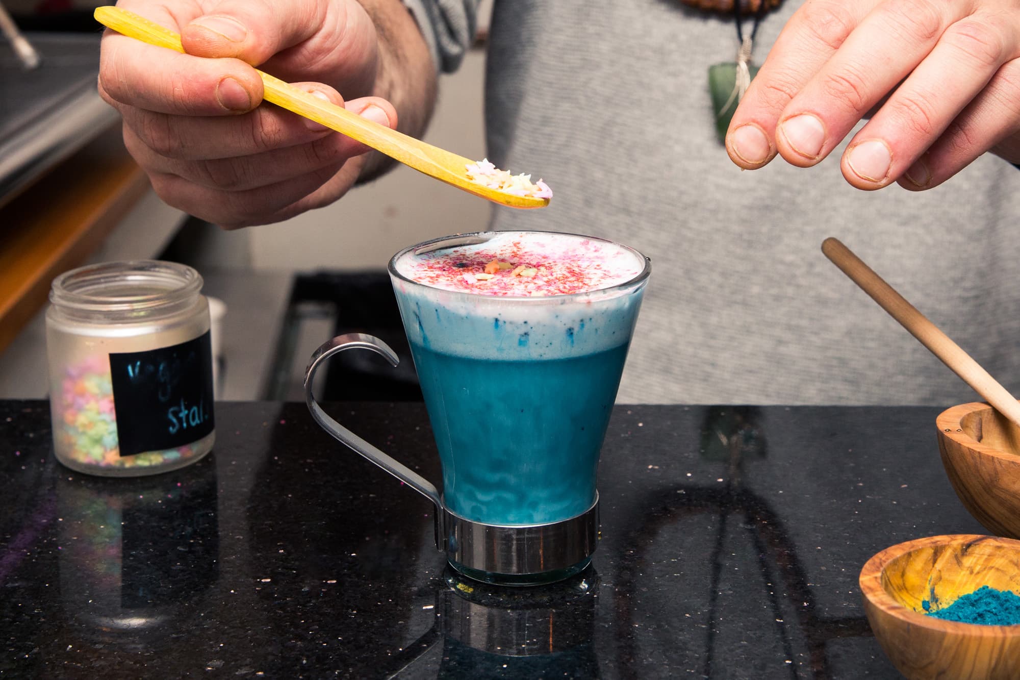 To us, Instagram has become the equivalent of a menu with pictures, save for the fact that IRL, such a thing usually signals a questionable dining experience. Our point: it’s a visual representation of what we’re going to get. And when it looks pretty and most likely definitely delicious? We want it, like the unicorn latte! It’s literal eye candy—blue, pink, and topped with little rainbow-colored confetti, created by Brooklyn-based cafe, The End. Naturally, we had them show us how we could make it at home—you know, in case you’re craving some fancy Sunday morning coffee.