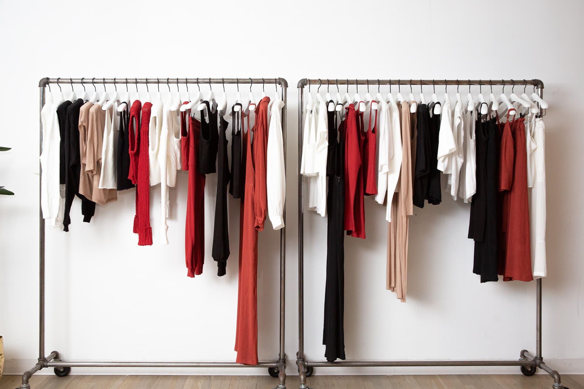 “We still have them every single day because, honestly, this is a dream. We get to work together, and we have this brand that we love that totally encapsulates what we’re all about. But it was definitely some of those moments when really key retailers picked up the brand. We walked into [FRWD by] Elyse Walker, one of the first boutiques we ever took the collection to, and by the end of the appointment, the buyer said, ‘OK, I want it.’ We packed up our stuff quickly and ran out the door, turned the corner, and we looked at each other and we screamed. We’ve had a lot of those. When Net-a-Porter picked it up, we were running around the apartment screaming.”
