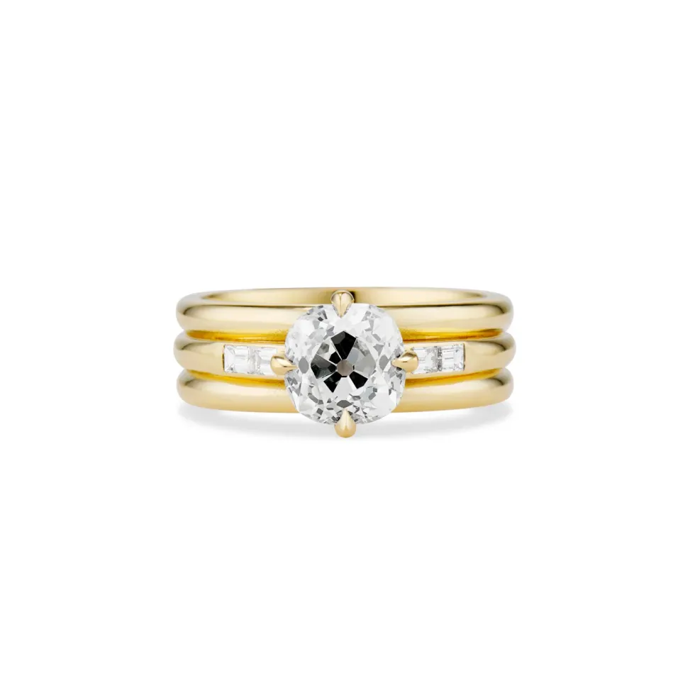 The engagement ring's return to its roots signifies two things: an aesthetic shift and a cultural change. Aesthetic in that we've collectively been embracing maximalist fashion and beauty—and this is product of that. "The band itself has become a big part of the design—it has main character energy," Jillian Sassone, founder of Marrow Fine, says. "Our clients love how a wider band grounds the center stone and gives the ring a confident, modern feel." Cultural in that sentimental value and personal style are taking precedence over whatever trend reigned for the past several years—we're less concerned about what's endorsed by celebrities or influencers, and more interested in what makes us feel most like ourselves. "People want a ring that represents them and makes them feel comfortable to wear daily," Ashley Zhang, owner of her namesake jewelry brand, says.