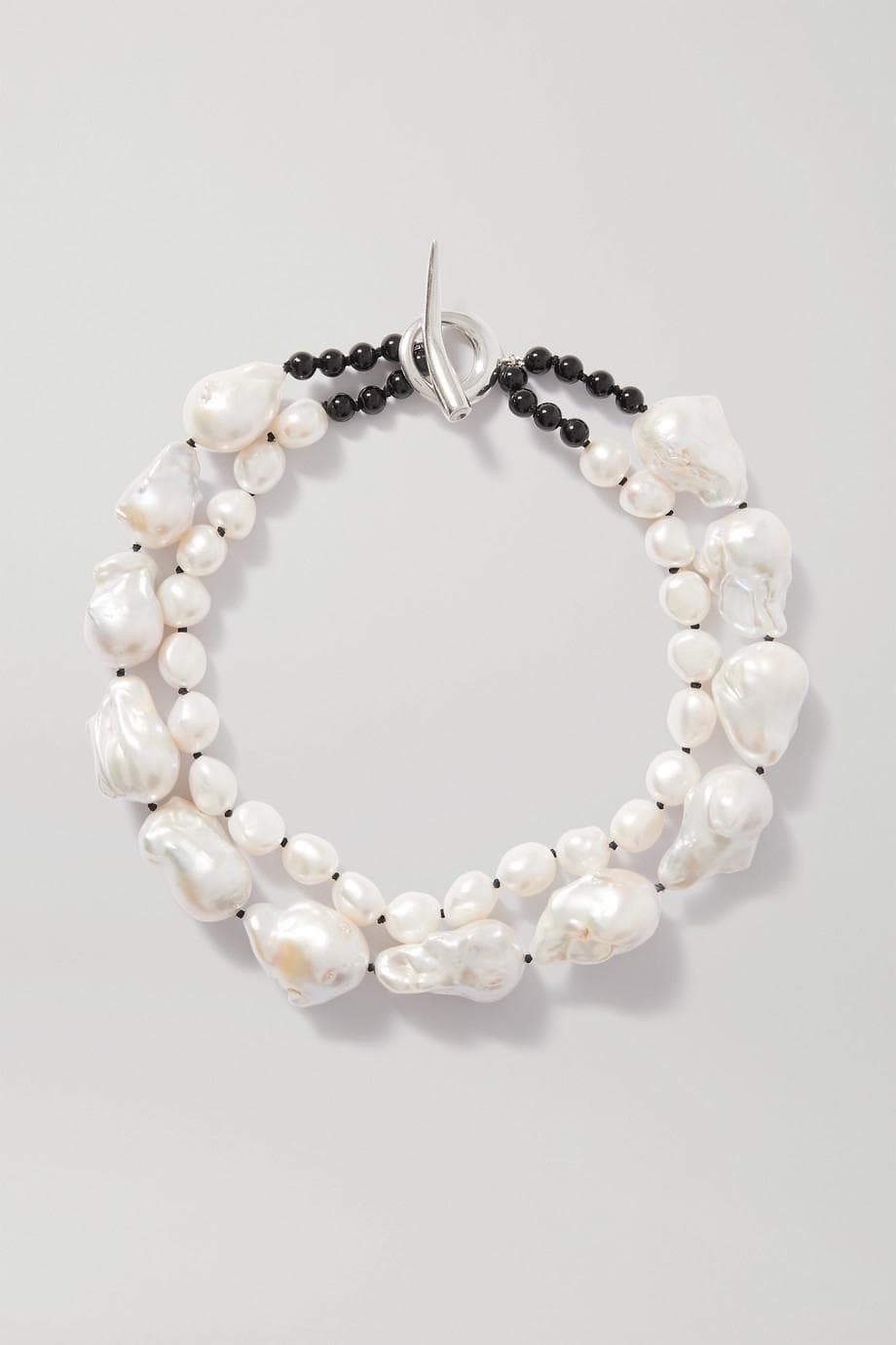 Silver Pearl and Onyx Necklace
