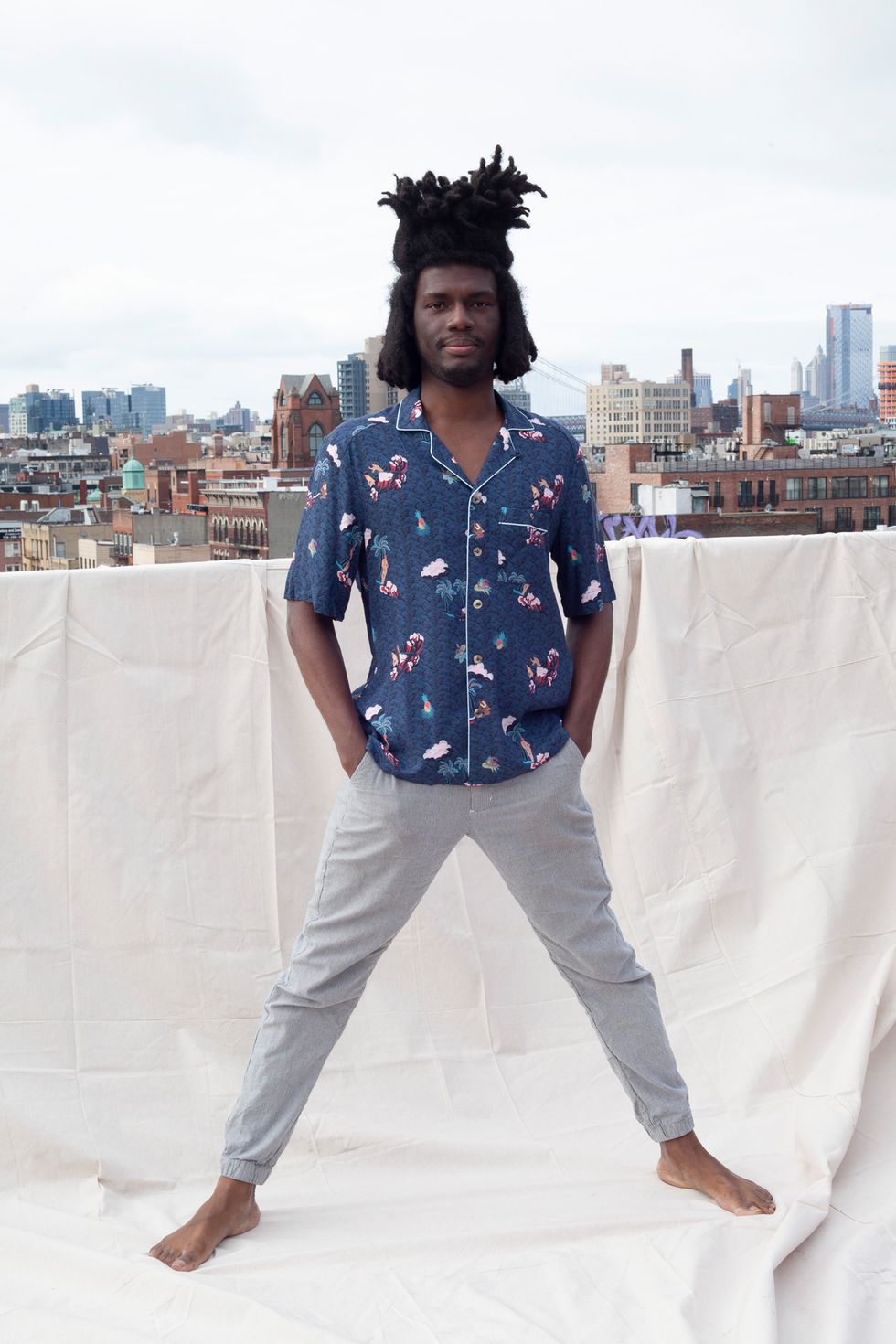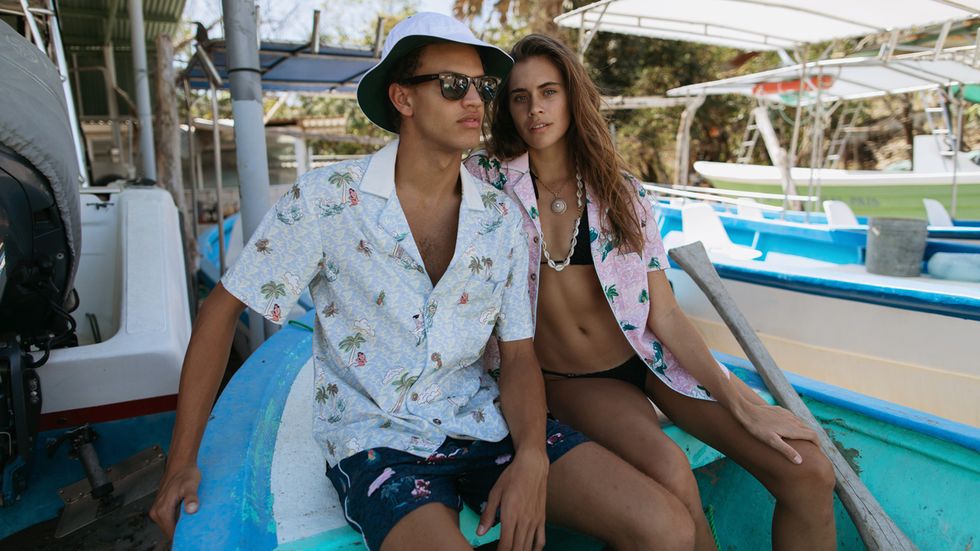 Tombolo’s designs have found the perfect median between whimsy, vintage, cool, and modern—no easy feat when you think of honoring such iconic garb. Sard and Galasso tapped illustrators to help them capture that sipping-out-of-a-coconut-under-a-palm-tree vibe. “We basically impart the essence of what Tombolo stands for and then let artists run wild within some very loose parameters. Once we get the art, we transform it into a repeating pattern and configure it into a shirt. This more open-ended process has been really fulfilling, and it’s led to fun collaborations with wonderful young artists like Amber Vittoria and Ana Leovy,” Galasso explains. As for what’s next for the brand? “We’ve got a store opening in Nolita, which will be a great way to meet some of our customers and also test out some wild product ideas with limited drops. We’re excited about that. And we’ve been experimenting with embroidered terry cloth cabana shirts, which people are responding well to—we’re excited to roll out more of those designs.”
