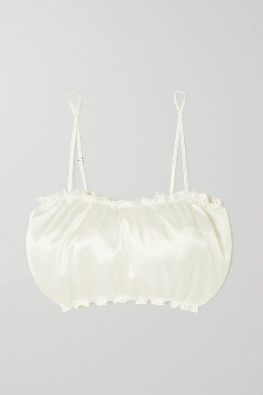 Lombard Street Ruffled Silk-blend Satin Soft-cup Bandeau Bra