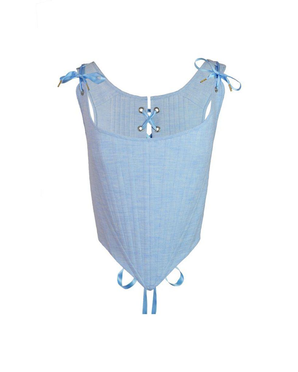 Rooted in upcycling, she brings new meaning to the idea of a shirt, swapping sandwiches for bras, popcorn bags for vests. In doing so, she deconstructed the notion of a top in the fashion sense, revealing that basically anything goes. "I've made tops out of fans, bags, lemon squeezers, and croissants. It can literally be anything," McLaughlin tells Coveteur. "It depends on what you want, but my ideal top is multi-functional." Her bolder-is-better mentality did not evolve from a vacuum this year, either.