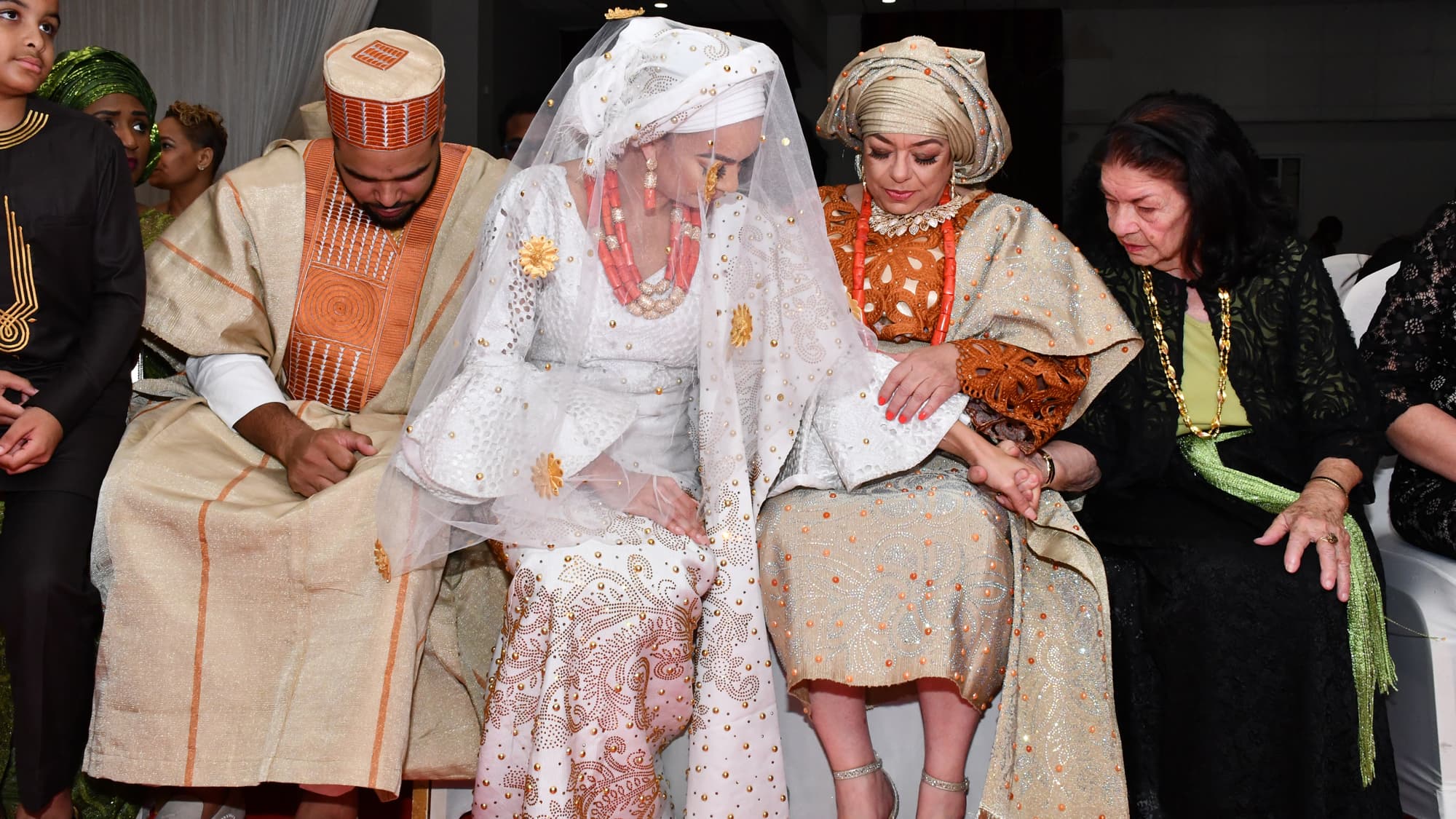 “Realistically, everything is different between the two! Essentially, the Nigerian ceremony is a traditional engagement. It goes back to being in Nigeria, where the couple would bring their two families together—often from two different villages—to meet one another and approve of their engagement so that they could be married. During the ceremony, the groom will beg, literally on the ground, for the bride’s hand in marriage, where the bride