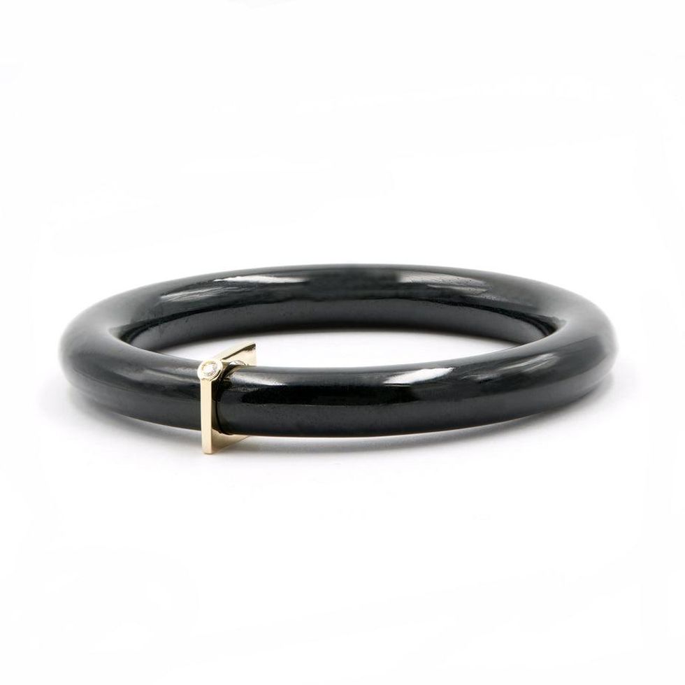 This stunning black jade bangle with delicate bezel-set diamonds from Bliss Lau is so strong, distinct, and fabulous—it’s the perfect addition to my growing arm party.